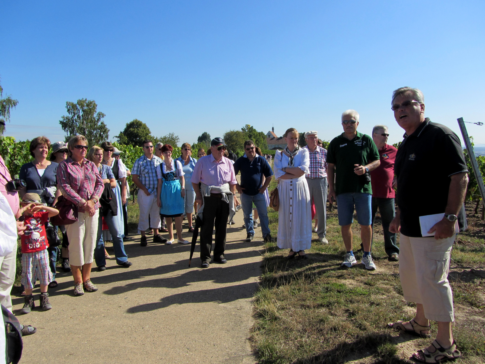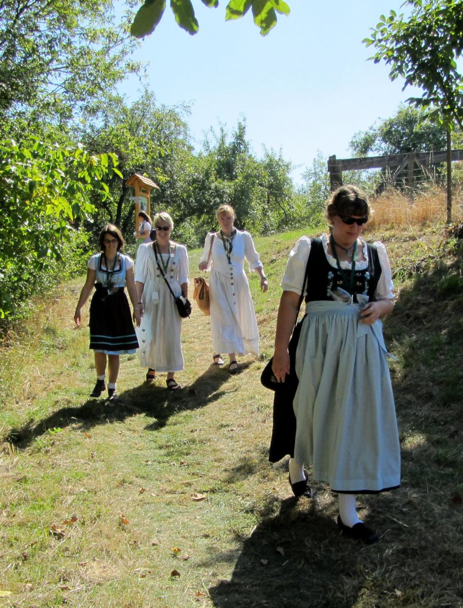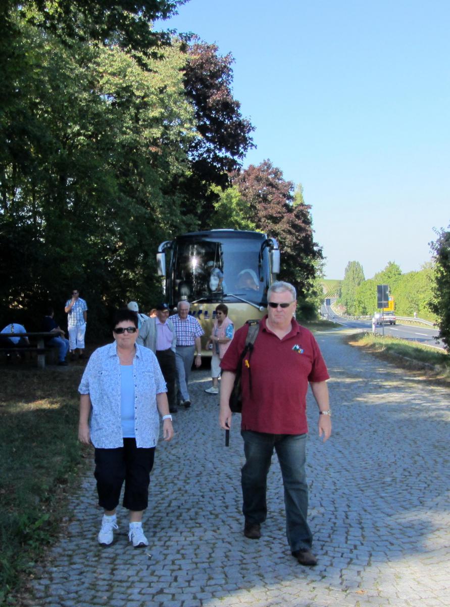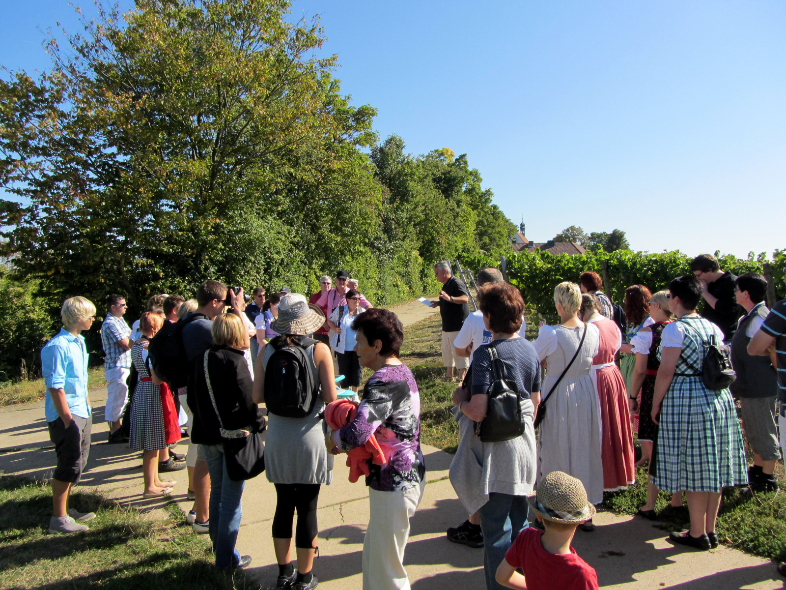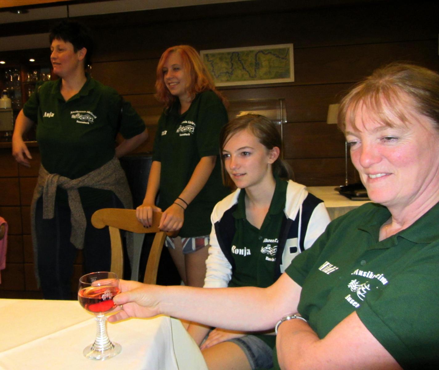 Ein wunderschönes verlängertes Wochenende verbrachten wir bei unserem Ausflug ins Fränkische Weinland. Am Freitag, den 07.09. reisten wir bei Kaiserwetter an und nach einem Mittagessen ging’s auch schon auf Wanderschaft nach Volkach. Dort hatten wir den Rest des Tages zur freien Verfügung, was einige für einen Ausflug ins Wikingerdorf, andere für einen gemütlichen Abend in unserer Unterkunft nutzten. Am Samstag stand die große Weinerlebniswanderung auf dem Plan. Neben den wunderschönen Wegen durch die fränkischen Weinberge, die wir teils zu Fuß und teils per Traktoranhänger zurücklegten, gab’ es viele Dinge für uns zu lernen: wir wissen jetzt, wie das Frankenlied geht, wie Fränkischer Rotling gemacht wird, warum der Silvaner ein Männerwein ist und vieles anderes mehr. Im Gegenzug wissen die Franken jetzt natürlich auch wie das Badnerlied geht. Höhepunkt der Weinwanderung war die Wahl Ihrer königlichen Hoheit Uli zur Weinwanderkönigin. Unter vielen Huldigungsbezeugungen für Ihre Majestät ging es zurück zu unserer Unterkunft, der Rose in Obereisenheim. Dort gaben wir ein viel umjubeltes Platzkonzert und ließen den Tag ausklingen – die einen kürzer, die anderen länger. Am Sonntag Morgen starteten wir zu unserer Stadtbesichtigung nach Würzburg um im Anschluss in einem gemütlichen Biergarten unser Ausflugsprogramm zu beenden. Es war eine tolle Fahrt in eine wunderschöne Gegend. Herzlichen Dank an Eugen, unseren „Vergnügungsminister“, für die Organisation des unvergesslichen Ausflugs.