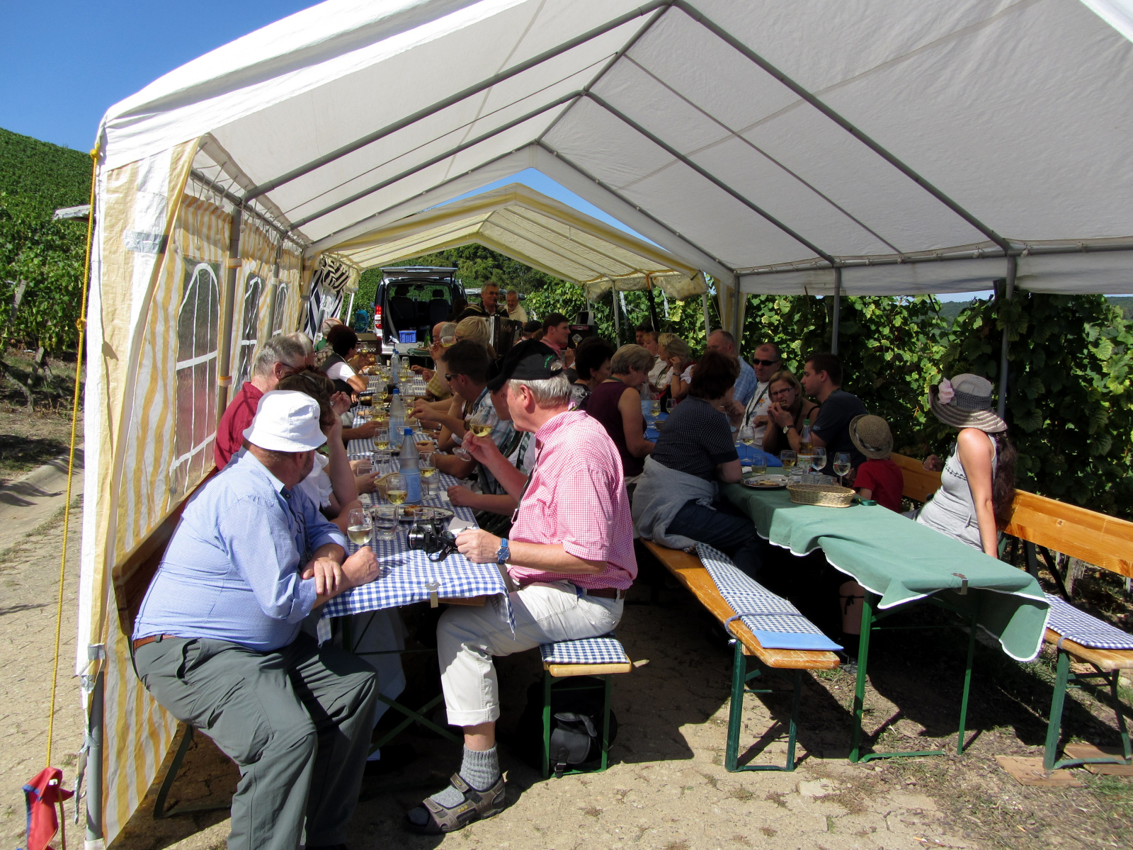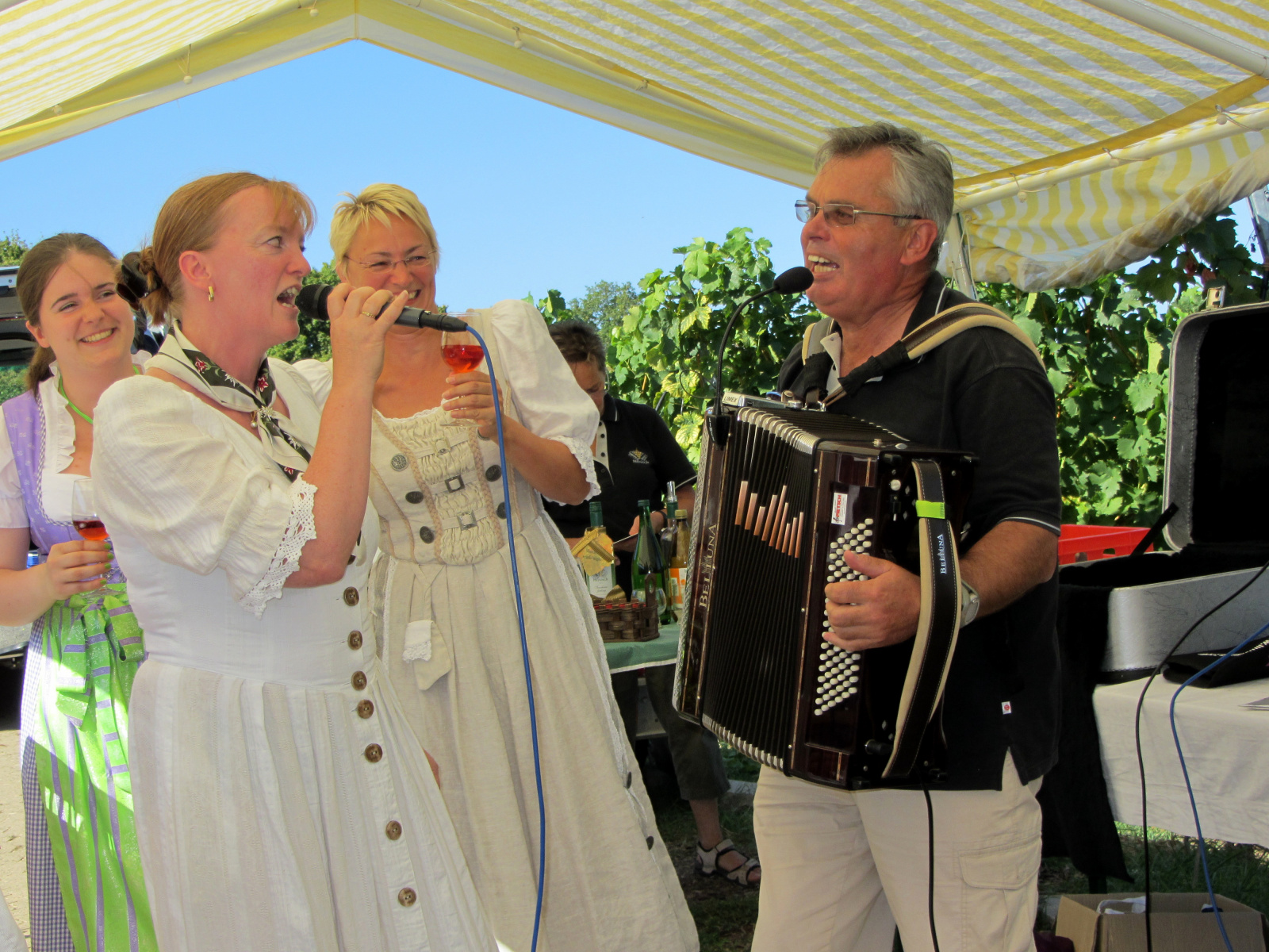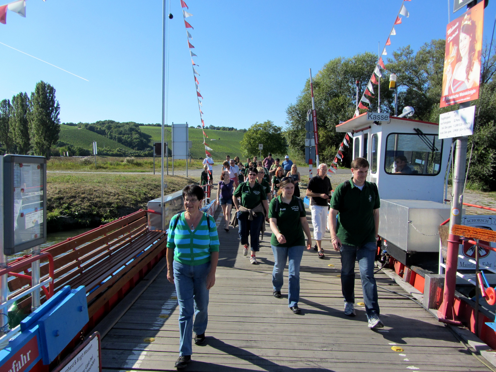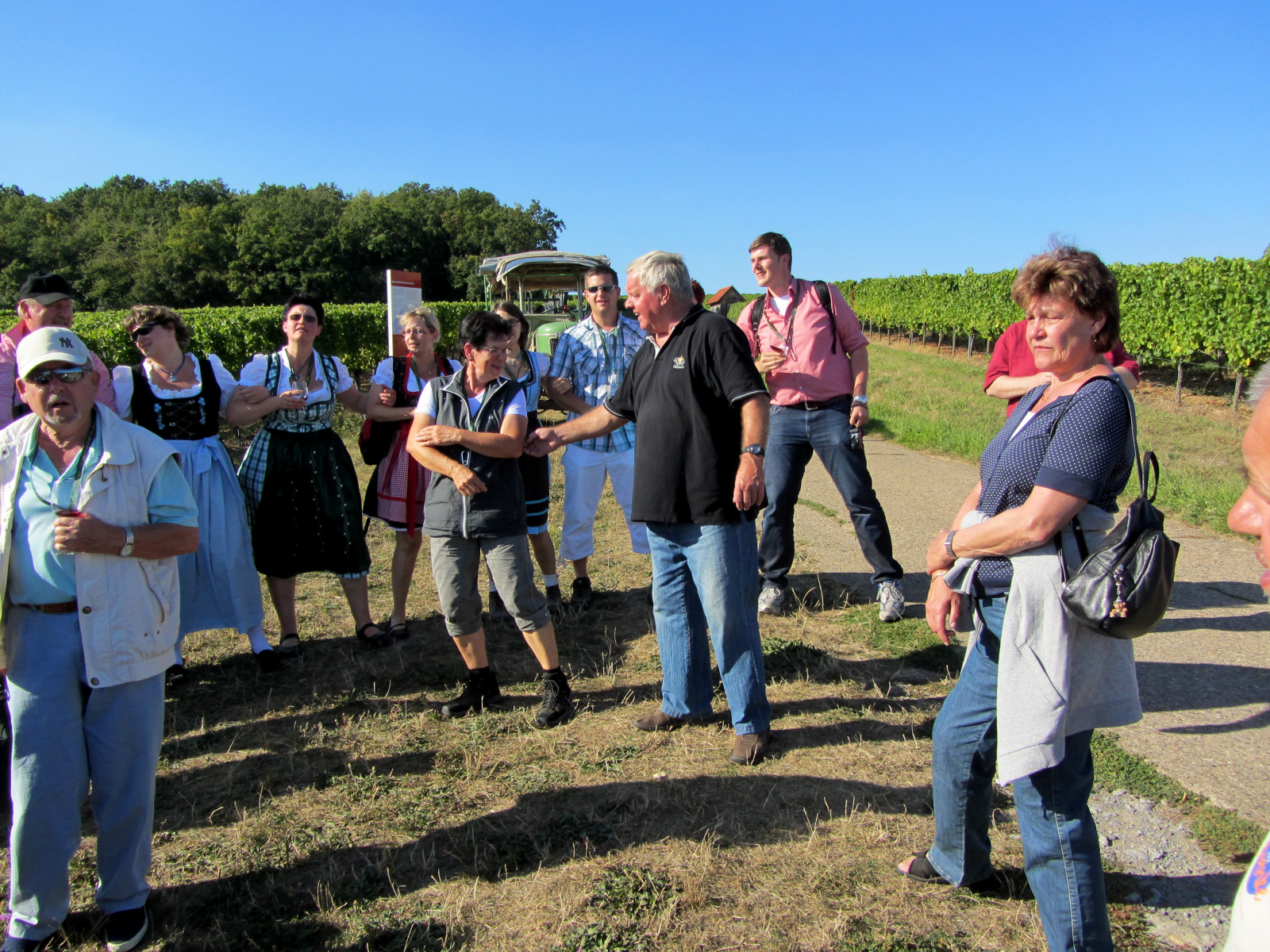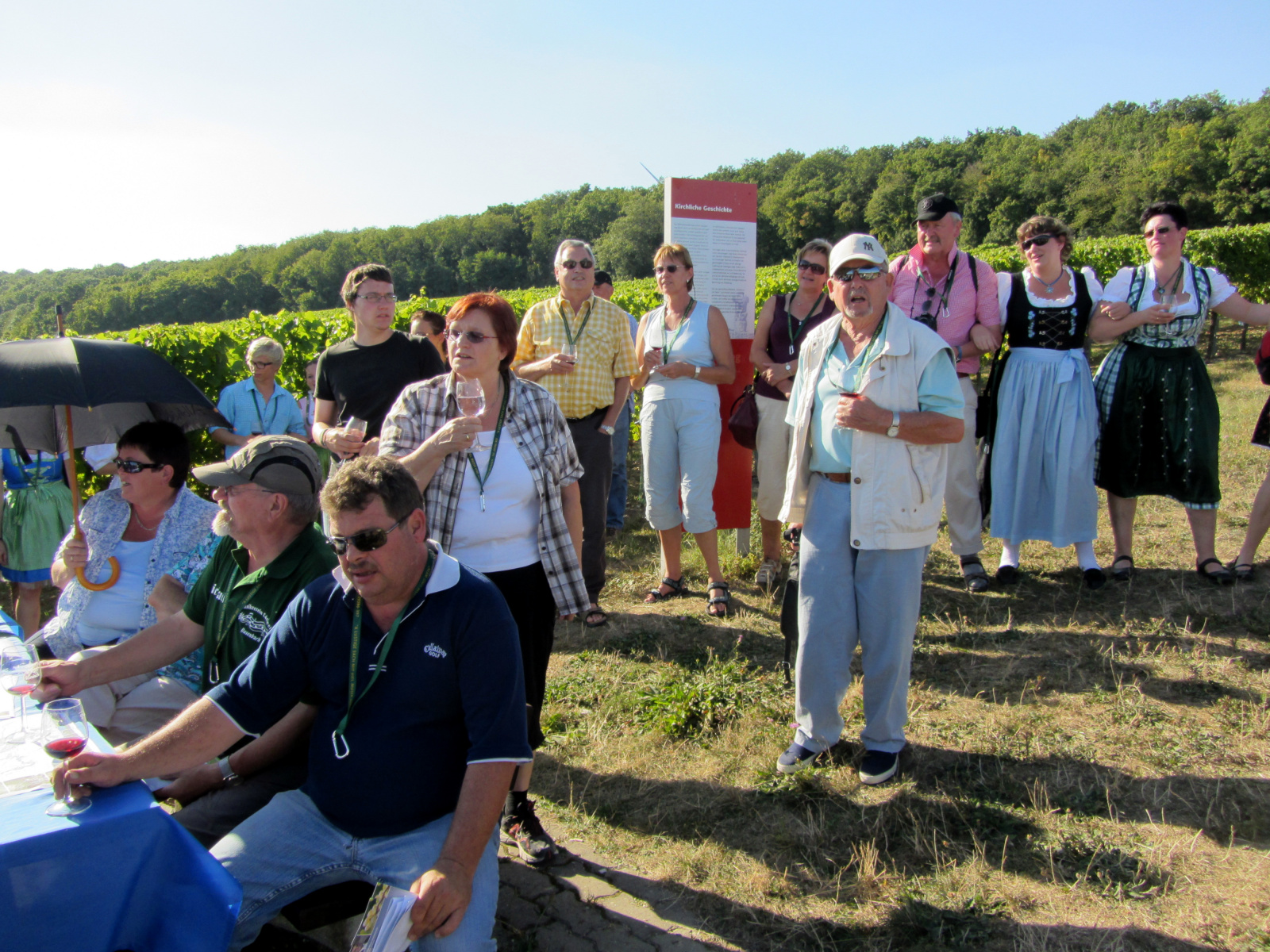 Ein wunderschönes verlängertes Wochenende verbrachten wir bei unserem Ausflug ins Fränkische Weinland. Am Freitag, den 07.09. reisten wir bei Kaiserwetter an und nach einem Mittagessen ging’s auch schon auf Wanderschaft nach Volkach. Dort hatten wir den Rest des Tages zur freien Verfügung, was einige für einen Ausflug ins Wikingerdorf, andere für einen gemütlichen Abend in unserer Unterkunft nutzten. Am Samstag stand die große Weinerlebniswanderung auf dem Plan. Neben den wunderschönen Wegen durch die fränkischen Weinberge, die wir teils zu Fuß und teils per Traktoranhänger zurücklegten, gab’ es viele Dinge für uns zu lernen: wir wissen jetzt, wie das Frankenlied geht, wie Fränkischer Rotling gemacht wird, warum der Silvaner ein Männerwein ist und vieles anderes mehr. Im Gegenzug wissen die Franken jetzt natürlich auch wie das Badnerlied geht. Höhepunkt der Weinwanderung war die Wahl Ihrer königlichen Hoheit Uli zur Weinwanderkönigin. Unter vielen Huldigungsbezeugungen für Ihre Majestät ging es zurück zu unserer Unterkunft, der Rose in Obereisenheim. Dort gaben wir ein viel umjubeltes Platzkonzert und ließen den Tag ausklingen – die einen kürzer, die anderen länger. Am Sonntag Morgen starteten wir zu unserer Stadtbesichtigung nach Würzburg um im Anschluss in einem gemütlichen Biergarten unser Ausflugsprogramm zu beenden. Es war eine tolle Fahrt in eine wunderschöne Gegend. Herzlichen Dank an Eugen, unseren „Vergnügungsminister“, für die Organisation des unvergesslichen Ausflugs.