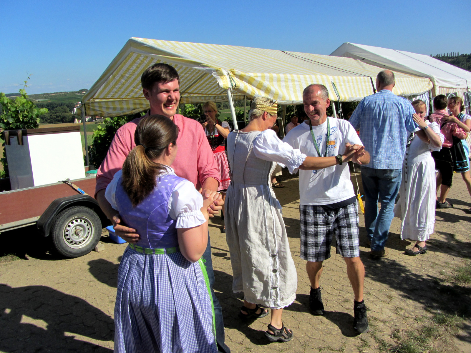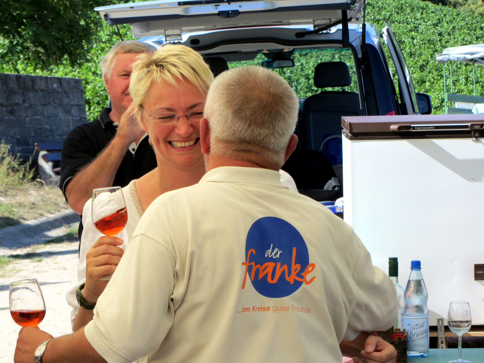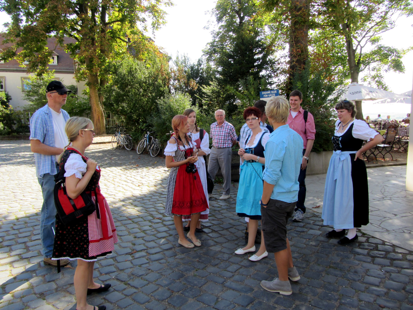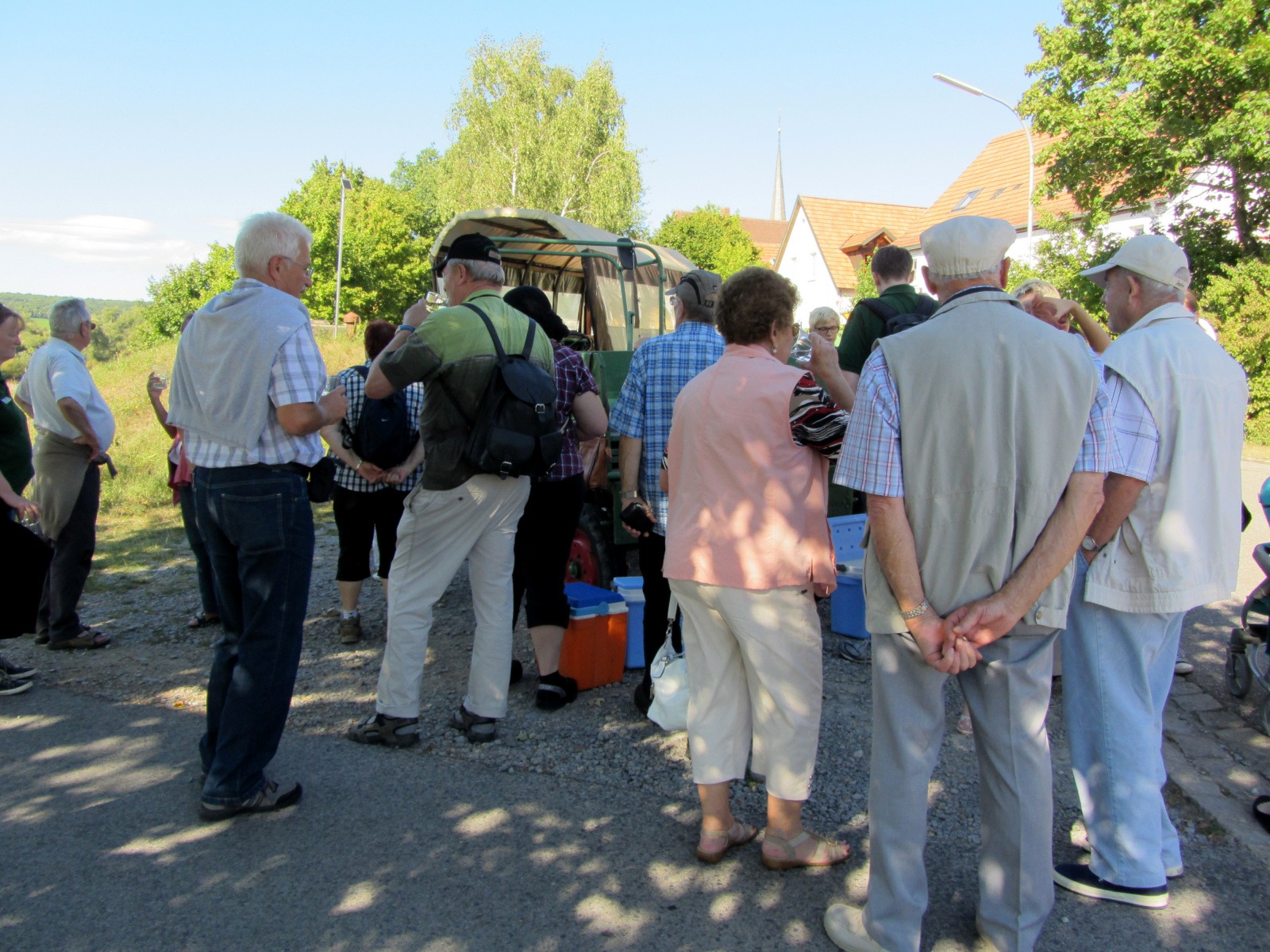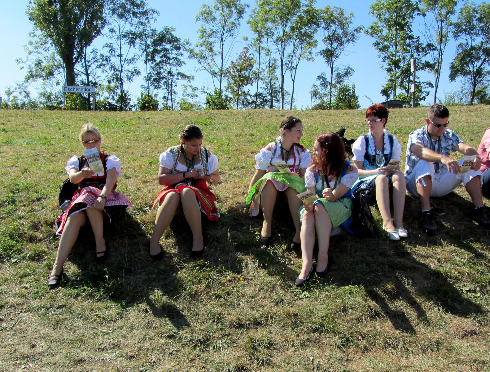 Ein wunderschönes verlängertes Wochenende verbrachten wir bei unserem Ausflug ins Fränkische Weinland. Am Freitag, den 07.09. reisten wir bei Kaiserwetter an und nach einem Mittagessen ging’s auch schon auf Wanderschaft nach Volkach. Dort hatten wir den Rest des Tages zur freien Verfügung, was einige für einen Ausflug ins Wikingerdorf, andere für einen gemütlichen Abend in unserer Unterkunft nutzten. Am Samstag stand die große Weinerlebniswanderung auf dem Plan. Neben den wunderschönen Wegen durch die fränkischen Weinberge, die wir teils zu Fuß und teils per Traktoranhänger zurücklegten, gab’ es viele Dinge für uns zu lernen: wir wissen jetzt, wie das Frankenlied geht, wie Fränkischer Rotling gemacht wird, warum der Silvaner ein Männerwein ist und vieles anderes mehr. Im Gegenzug wissen die Franken jetzt natürlich auch wie das Badnerlied geht. Höhepunkt der Weinwanderung war die Wahl Ihrer königlichen Hoheit Uli zur Weinwanderkönigin. Unter vielen Huldigungsbezeugungen für Ihre Majestät ging es zurück zu unserer Unterkunft, der Rose in Obereisenheim. Dort gaben wir ein viel umjubeltes Platzkonzert und ließen den Tag ausklingen – die einen kürzer, die anderen länger. Am Sonntag Morgen starteten wir zu unserer Stadtbesichtigung nach Würzburg um im Anschluss in einem gemütlichen Biergarten unser Ausflugsprogramm zu beenden. Es war eine tolle Fahrt in eine wunderschöne Gegend. Herzlichen Dank an Eugen, unseren „Vergnügungsminister“, für die Organisation des unvergesslichen Ausflugs.