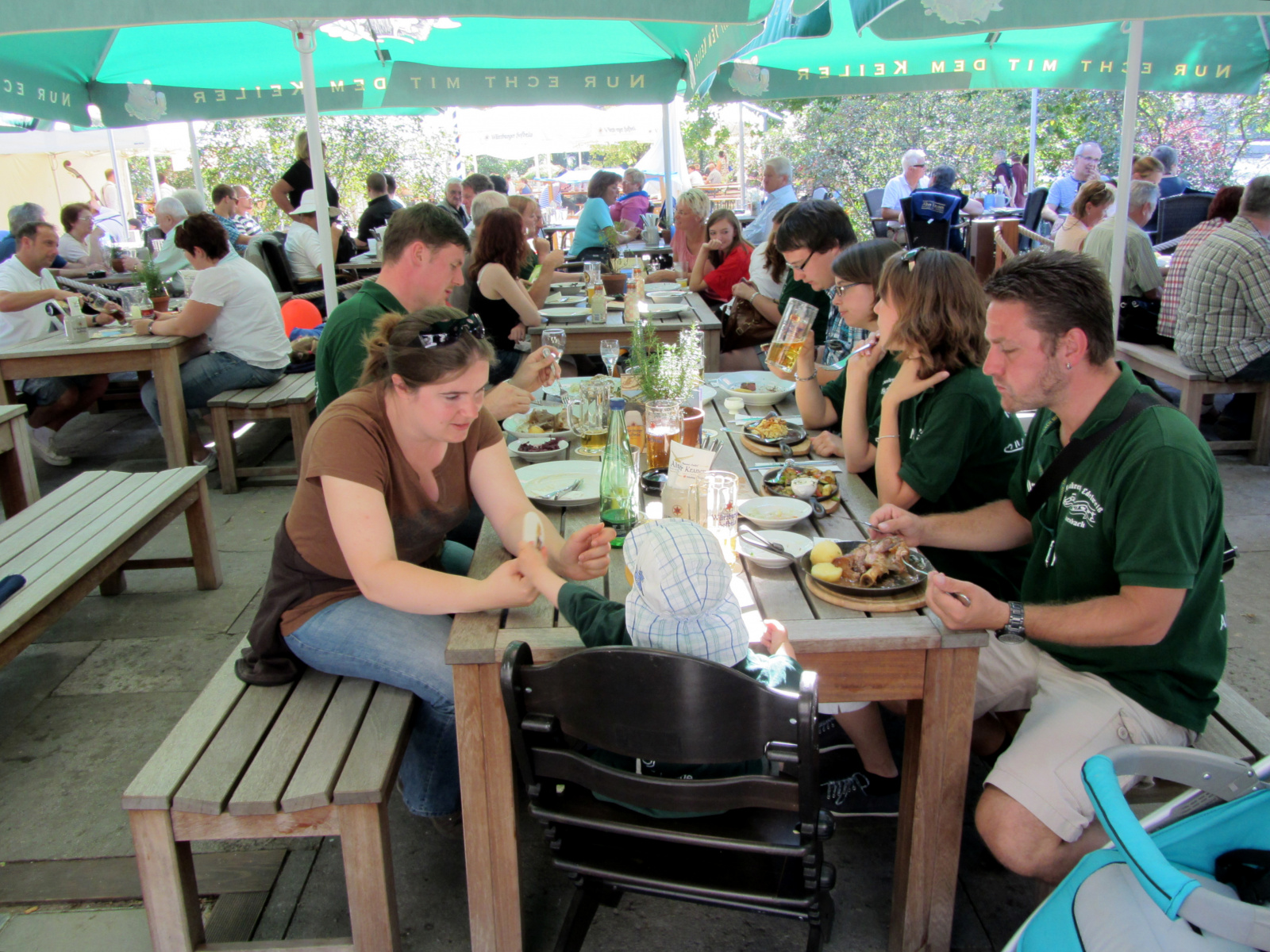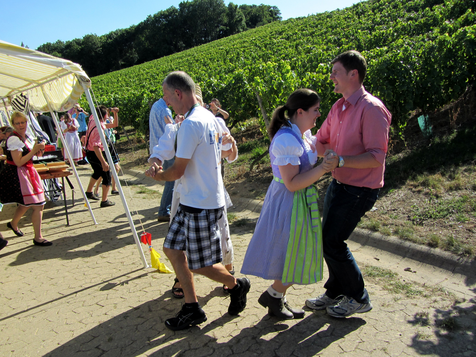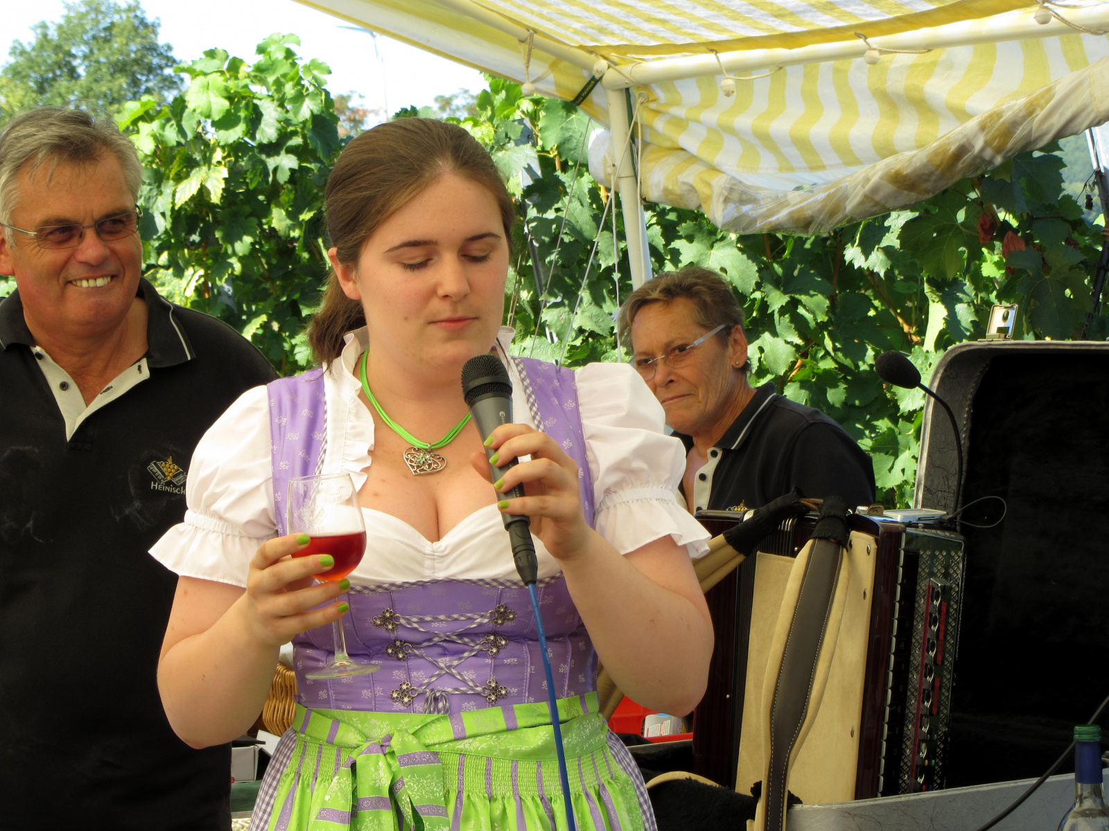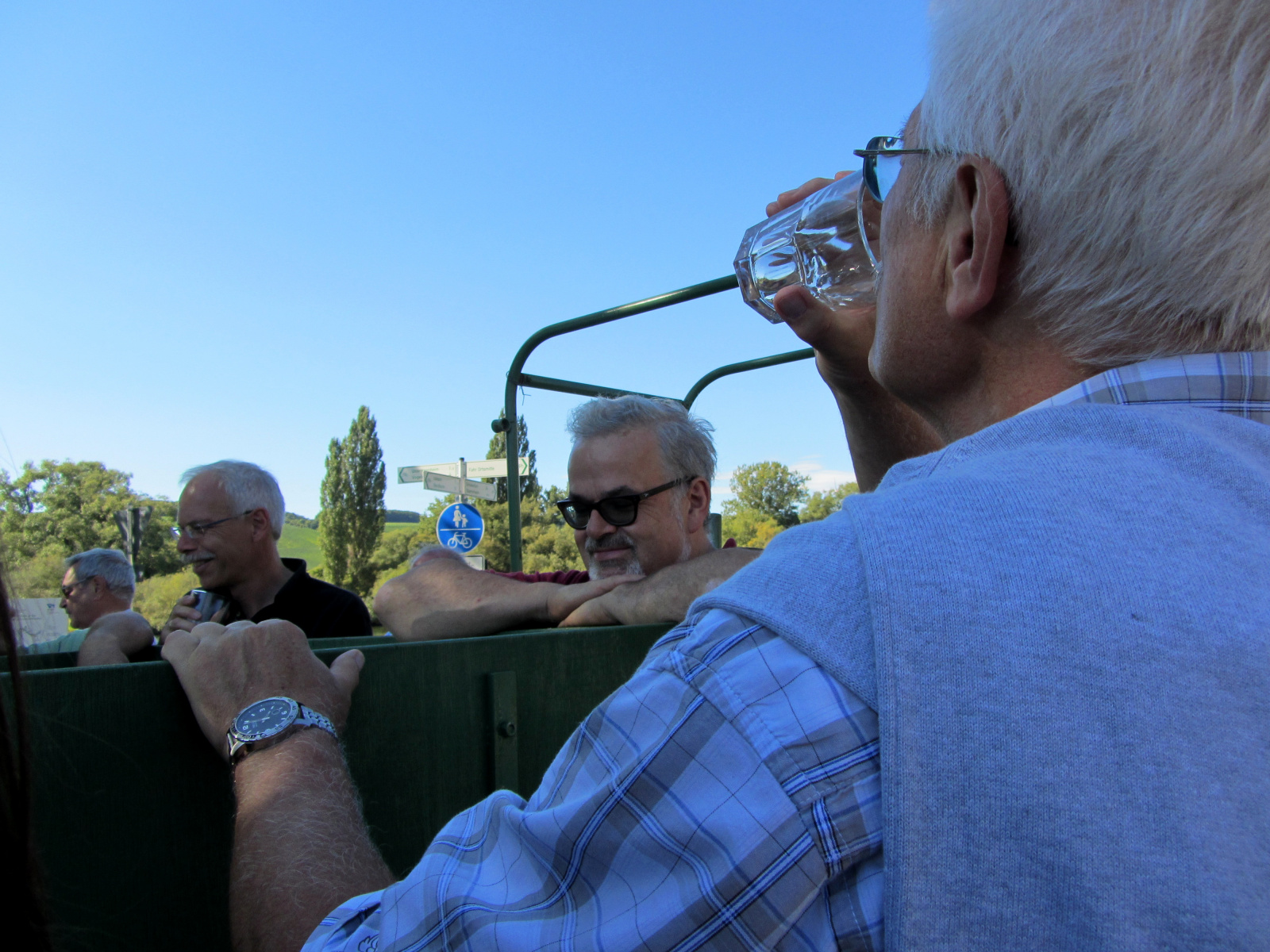 Ein wunderschönes verlängertes Wochenende verbrachten wir bei unserem Ausflug ins Fränkische Weinland. Am Freitag, den 07.09. reisten wir bei Kaiserwetter an und nach einem Mittagessen ging’s auch schon auf Wanderschaft nach Volkach. Dort hatten wir den Rest des Tages zur freien Verfügung, was einige für einen Ausflug ins Wikingerdorf, andere für einen gemütlichen Abend in unserer Unterkunft nutzten. Am Samstag stand die große Weinerlebniswanderung auf dem Plan. Neben den wunderschönen Wegen durch die fränkischen Weinberge, die wir teils zu Fuß und teils per Traktoranhänger zurücklegten, gab’ es viele Dinge für uns zu lernen: wir wissen jetzt, wie das Frankenlied geht, wie Fränkischer Rotling gemacht wird, warum der Silvaner ein Männerwein ist und vieles anderes mehr. Im Gegenzug wissen die Franken jetzt natürlich auch wie das Badnerlied geht. Höhepunkt der Weinwanderung war die Wahl Ihrer königlichen Hoheit Uli zur Weinwanderkönigin. Unter vielen Huldigungsbezeugungen für Ihre Majestät ging es zurück zu unserer Unterkunft, der Rose in Obereisenheim. Dort gaben wir ein viel umjubeltes Platzkonzert und ließen den Tag ausklingen – die einen kürzer, die anderen länger. Am Sonntag Morgen starteten wir zu unserer Stadtbesichtigung nach Würzburg um im Anschluss in einem gemütlichen Biergarten unser Ausflugsprogramm zu beenden. Es war eine tolle Fahrt in eine wunderschöne Gegend. Herzlichen Dank an Eugen, unseren „Vergnügungsminister“, für die Organisation des unvergesslichen Ausflugs.