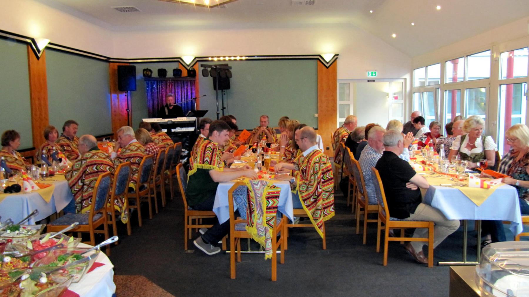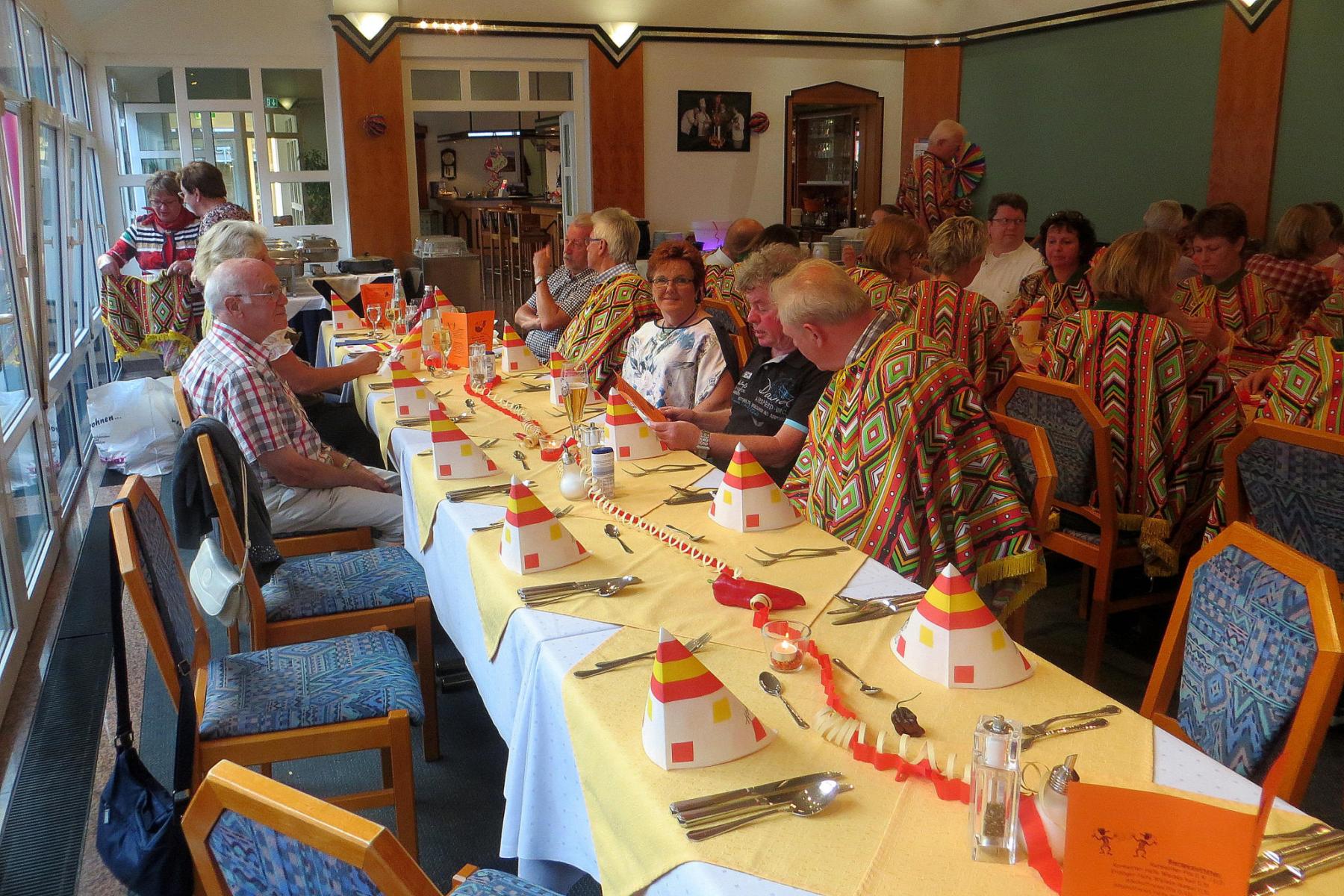 Pünktlich fuhren wir dann weiter zu unserem Ziel, das Hotel Residenz in Bad Neustadt an der Saale. Schon bei der Ankunft erwartete uns die Hotelleitung mit einem Begrüßungsbierchen und einem herzlichen Empfang. Die Zimmer waren schnell bezogen, so dass man sich im Hotelgarten auf den „Mexikanischen Abend“ vorbereiten konnte. Der Koch wartete mit einem Klasse Buffet auf, die Getränke waren frei und der Hausmusiker sorgte für die gute Stimmung. Ein unvergesslicher Abend im Hotel Residenz.