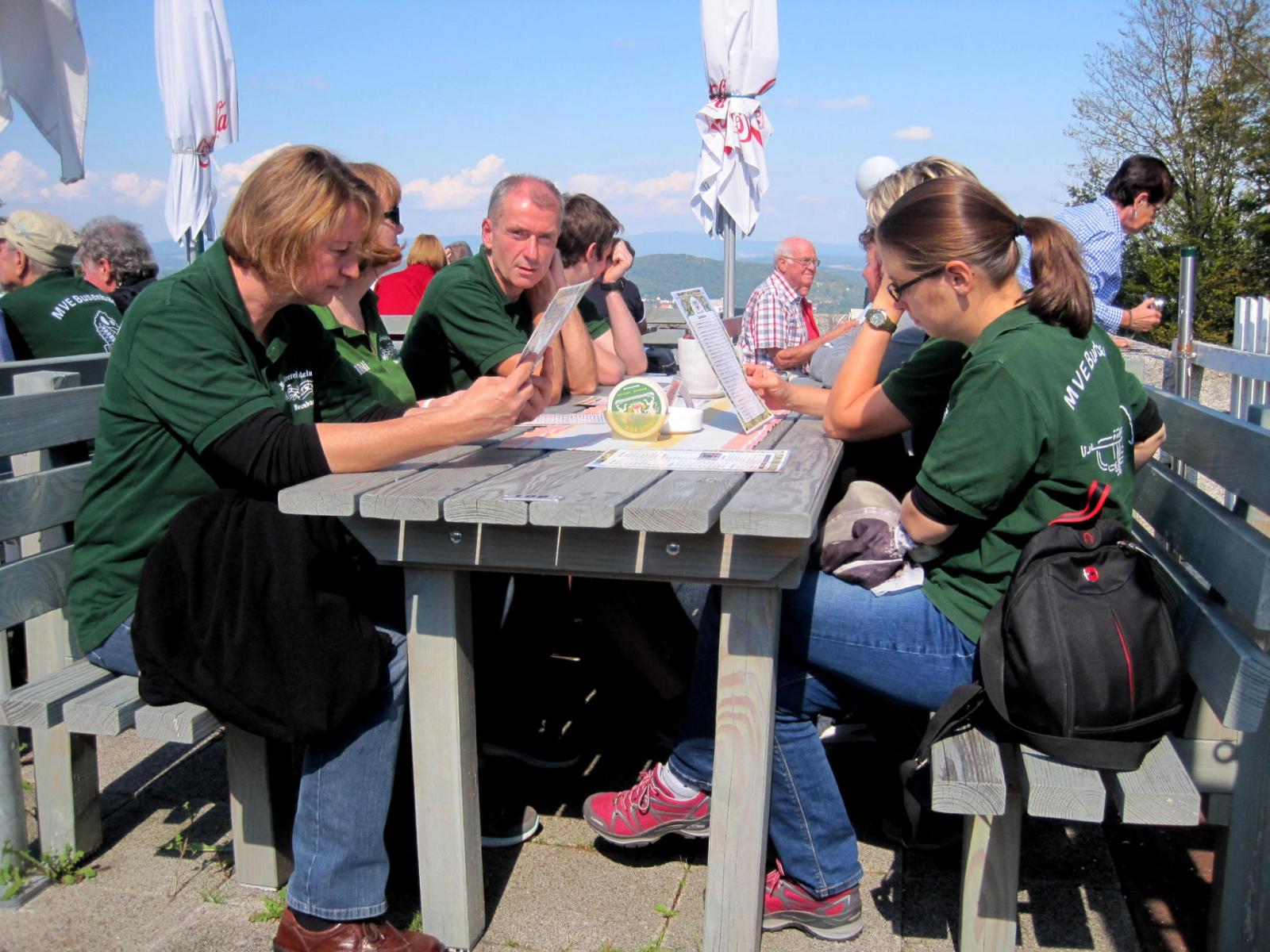 Nach einem Frühstück der Extraklasse ging es am nächsten Tag auf den „Heiligen Berg“ (Kreuzberg). Die Wanderung dauerte ca. 2 Stunden bis die letzten vor den drei Kreuzen oben standen. Auch das war wieder ein tolles Erlebnis und es machte natürlich auch durstig. In der nahen Klosterbrauerei konnte man das Problem aber sogleich beheben. Mit einem Abstecher zur Wasserkuppe, dem höchsten Berg der Rhön, schlossen wir den Nachmittag ab und fuhren mit dem Bus ins Hotel.