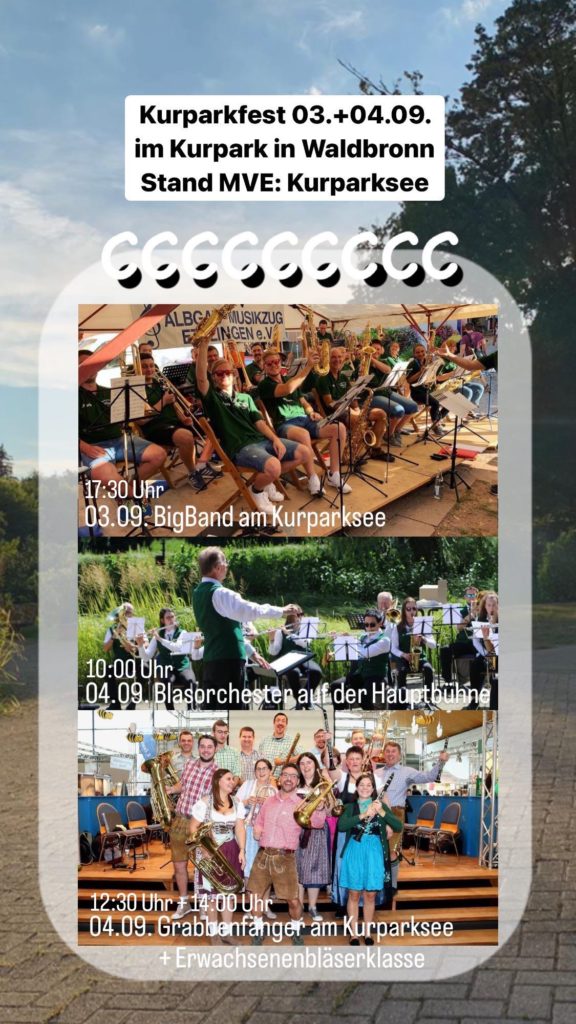 Am kommenden Wochenende findet nach dreijähriger Pause wieder das Kurparkfest der Gemeinde Waldbronn statt. Den Stand des MVEs finden sie direkt am Kurparksee.