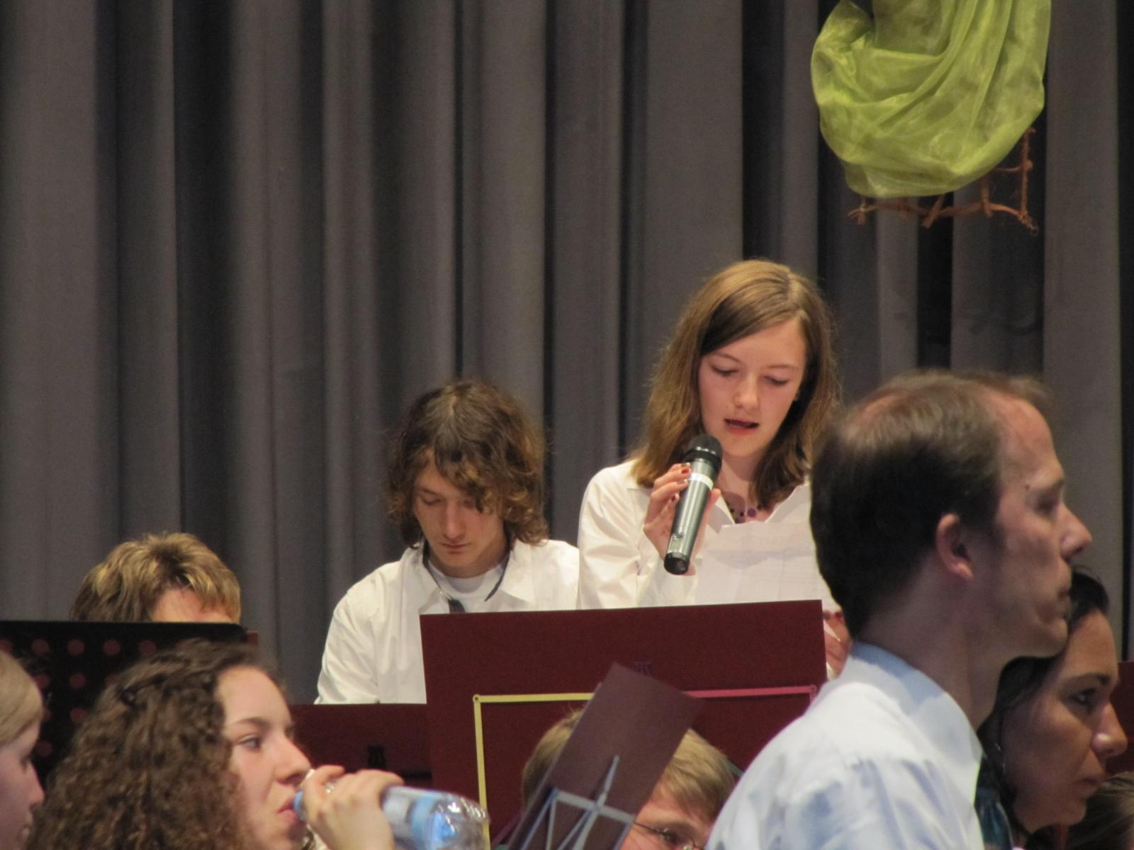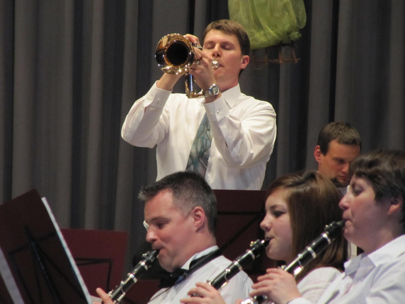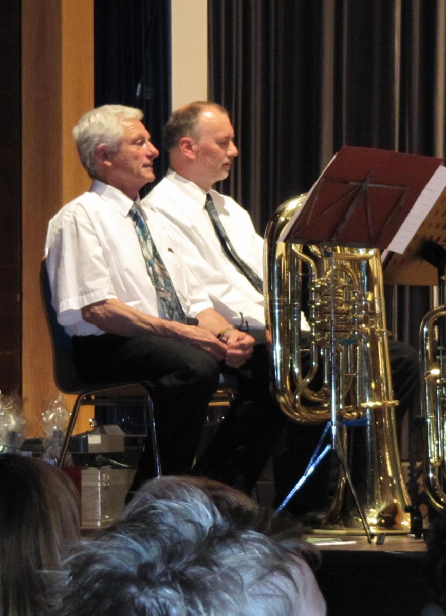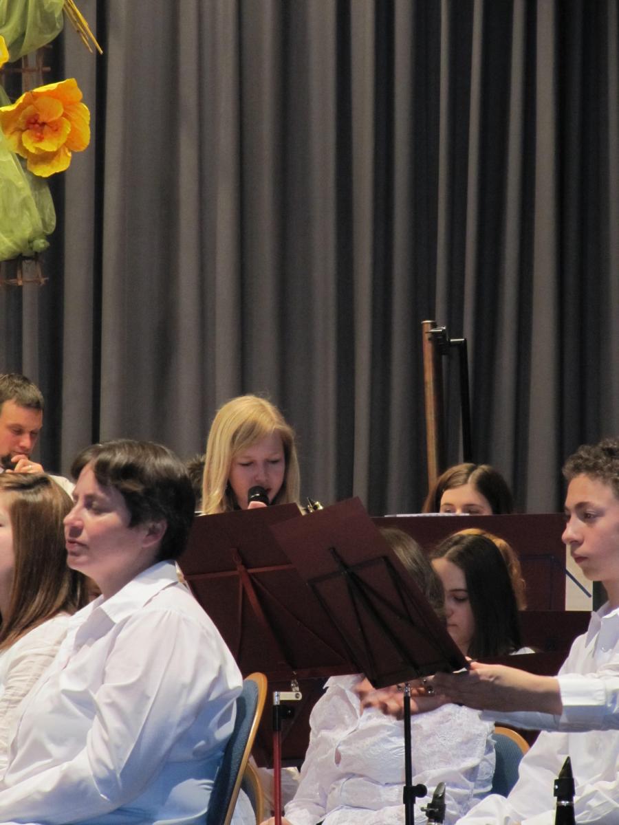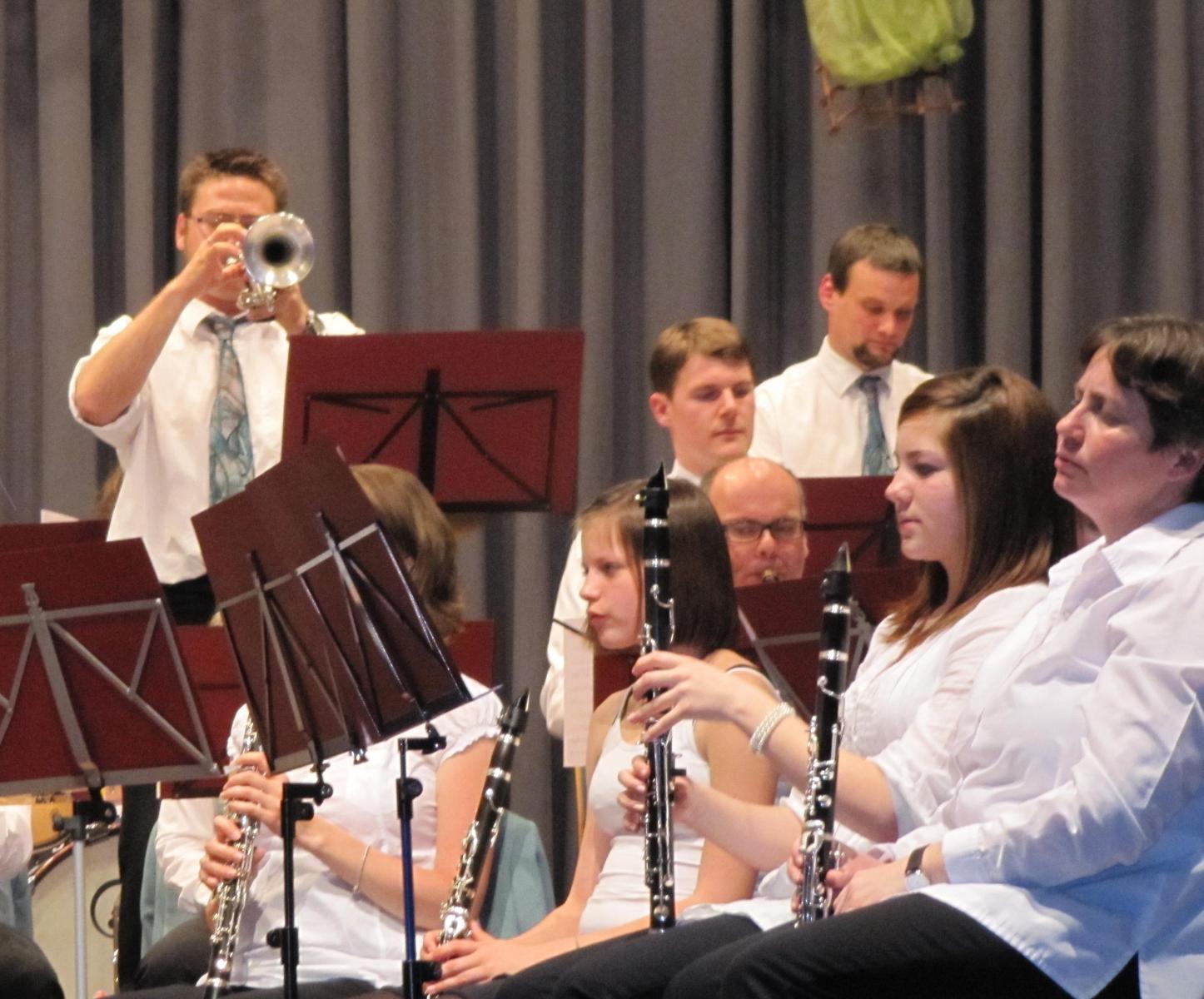 Im zweiten Teil des Abends kam auch unsere Jugend zum Einsatz. Zusammen mit dem großen Blasorchester und unter der Leitung der beiden Dirigenten Stefan Mussler und Dietmar Schulze zeigten sie ihren sehr guten musikalischen Ausbildungsstand. Mit . „Star Trek Through the Years„, „Free World Fantasy“ und „Selections from Mamma Mia!“ konnte man die Zuhörer beeindrucken, dass sich dann auch im tosenden Applaus niederschlug. Das Blasorchester setzte dann das Programm mit einem von Dietmar Schulze zusammengestellten Musikstück „Richtung Süden“ fort und den Schlusspunkt setzte das Orchester mit einem ebenfalls vom Dirigenten zusammengestelltem Stück des Komponisten Hans Zimmer mit dem Titel „Film ab„.