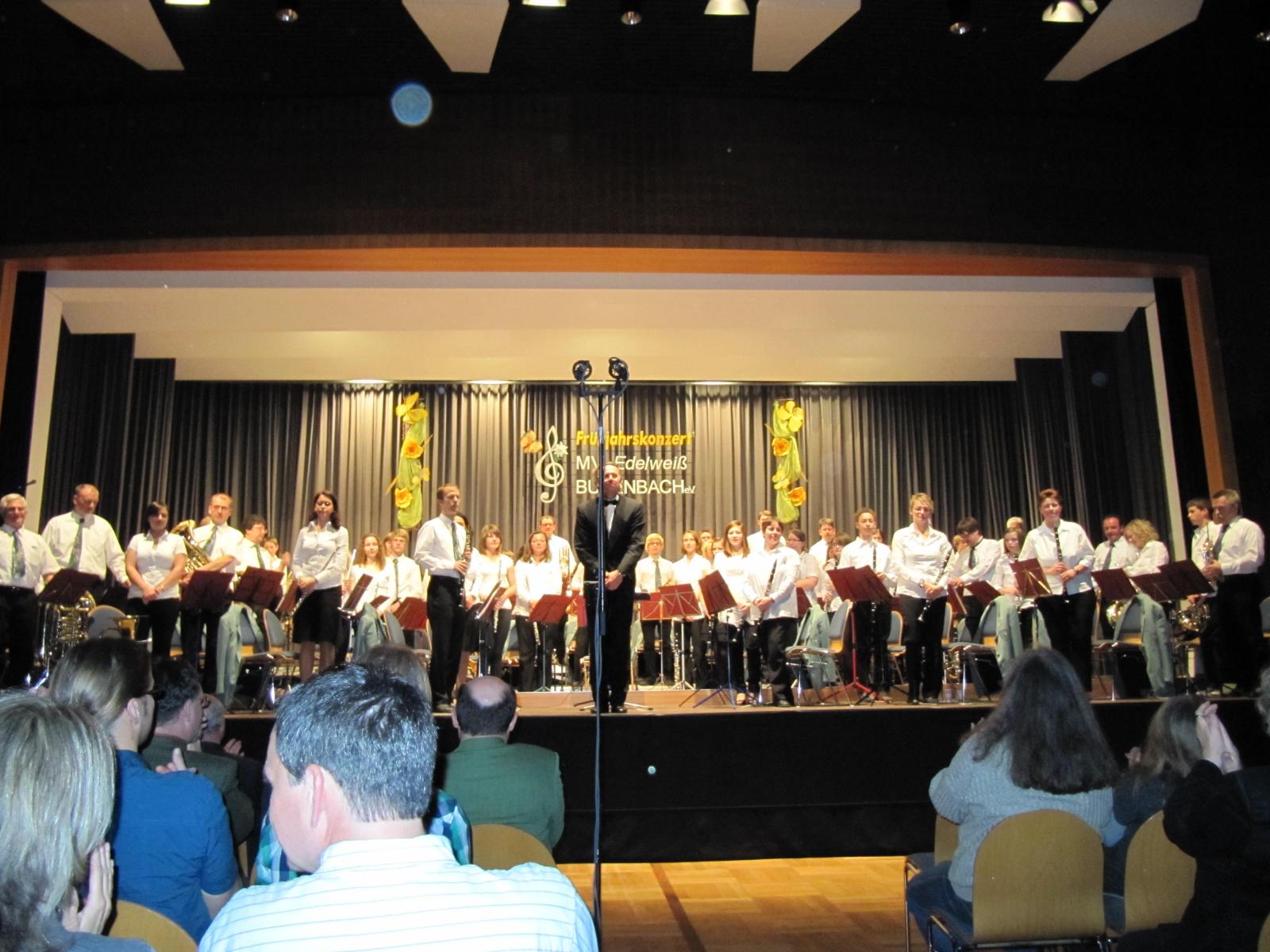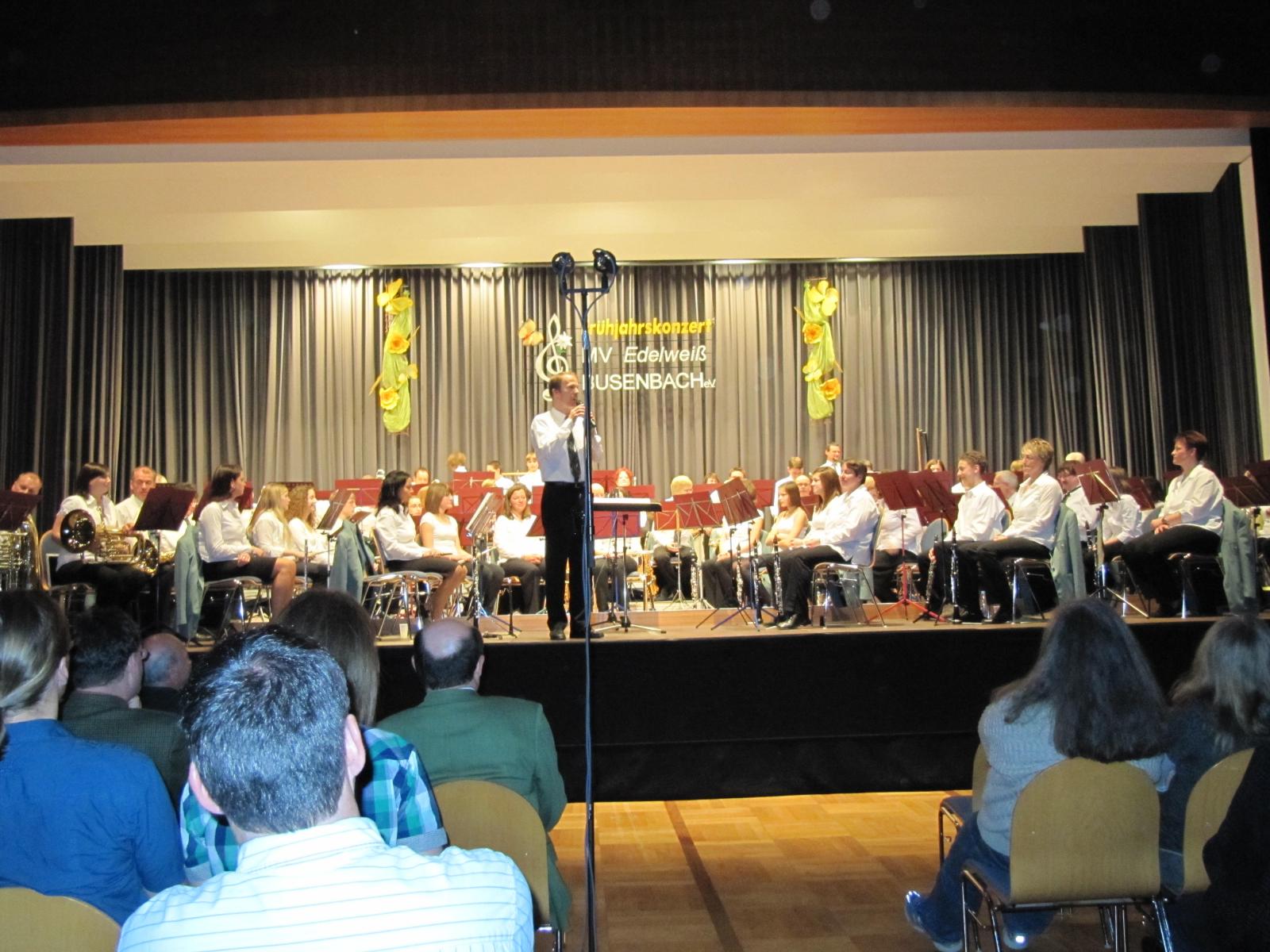 Trotz der vielen Konzerte die in den letzten 3 Wochen im Kurhaus stattfanden, war unser Frühjahrskonzert ein großer Erfolg. Dank der guten Auswahl der Musikstücke ist es wieder gelungen, die Zuhörer zu begeistern. Das Blasorchester unter der Leitung von Dietmar Schulze eröffnete das Konzert mit „March Willing and Able“ von Satoshi Yagisawa. Joachim Hirth stellte dazu in gewohnt guter Moderation den Zuhörern die Stücke vor. Gekonnt präsentierten Jasmin Singer und Agnes Pallmann ihr Flötensolo im nächsten Musikstück „Duettino für 2 Flöten und Orchester“ von Franz Albert Doppler. Es folgte als weiteres Musikstück von Satoshi Yagisawa der „March-Bou-Shu„. Auch bei diesem Stück waren die für uns etwas ungewöhnlichen Klänge des fernen Ostens zu spüren.