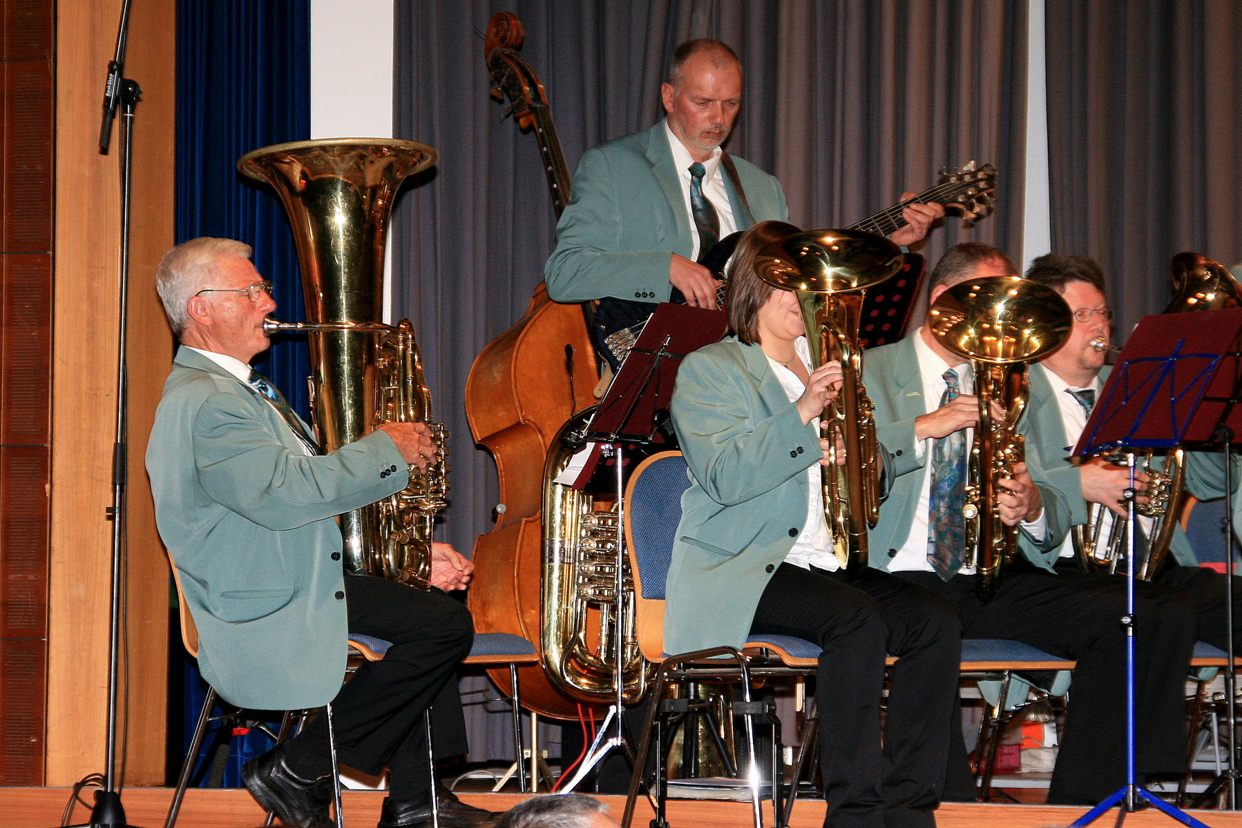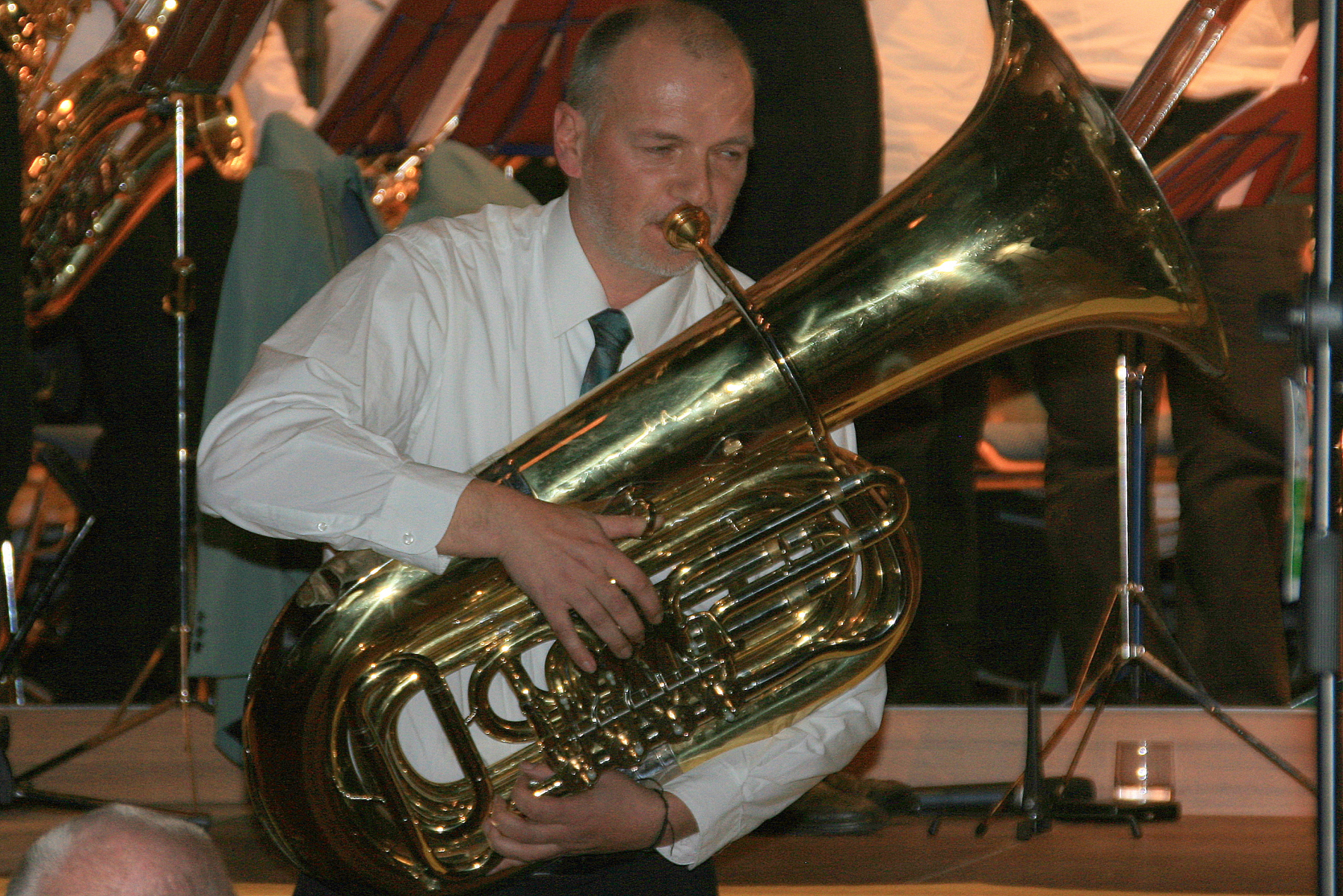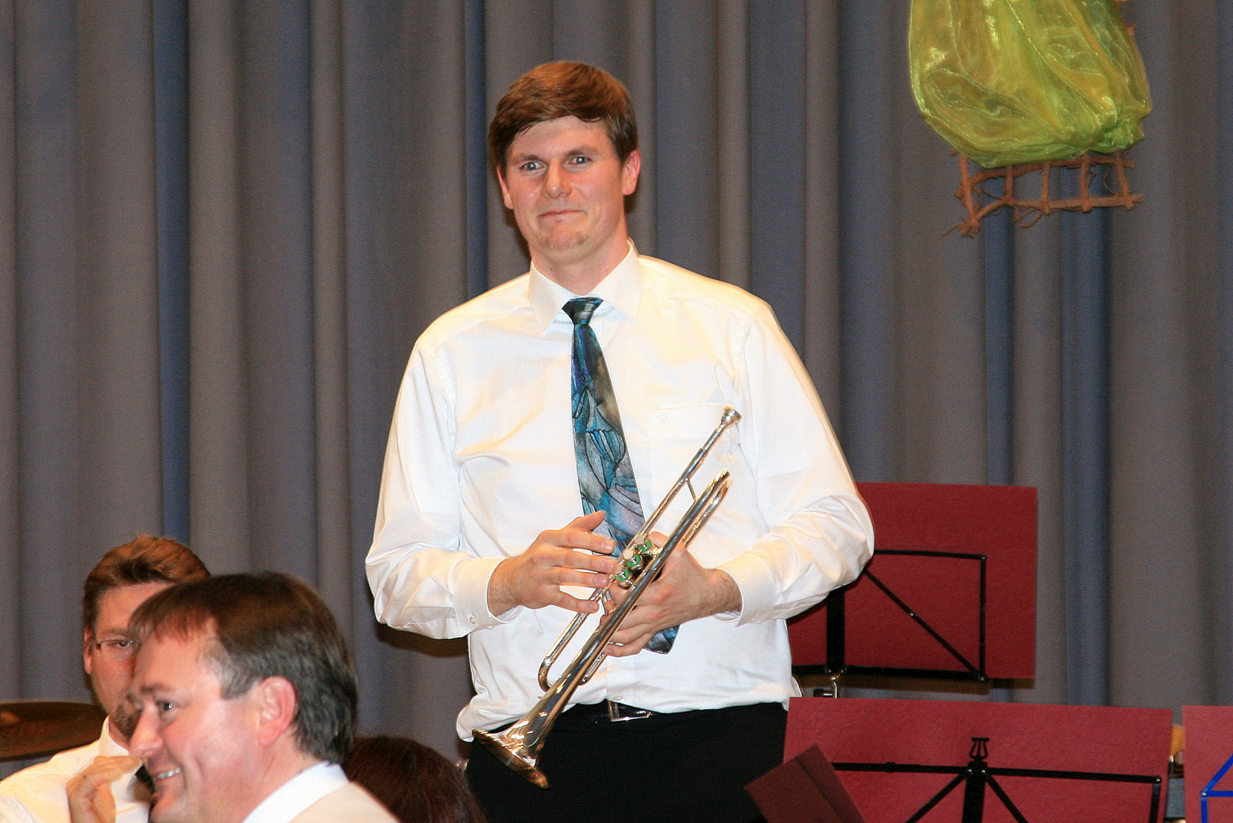 Für den lebhaften Applaus bedankten sich die Musiker mit Zugaben, darunter dem Deep Purple-Klassiker „Smoke on the Water“ und „Ai Se EU Te Pego“ als Geburtstagsständchen für ihren „Mixer“, der just an diesem Tag seinen 50. feierte und als willkommener Anlass zu einer kleinen Showeinlage zwischen Dirigent Dietmar Schulze und Geburtstagskind Michael Trautmann genutzt wurde.