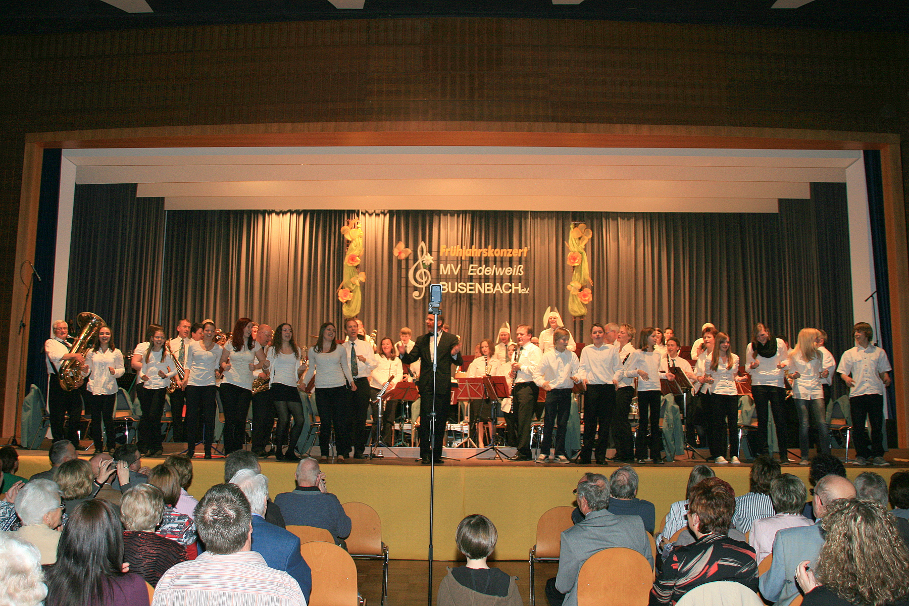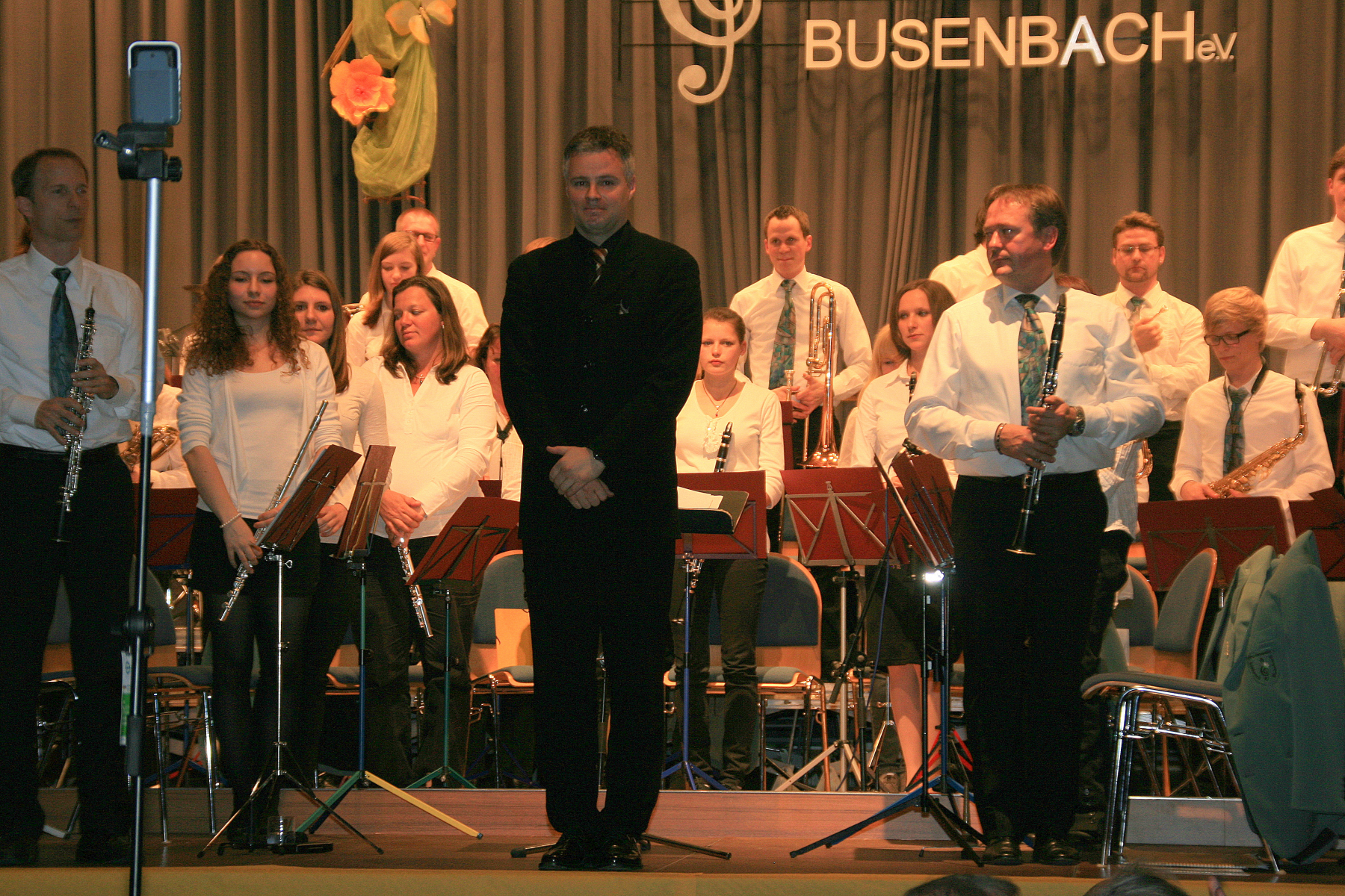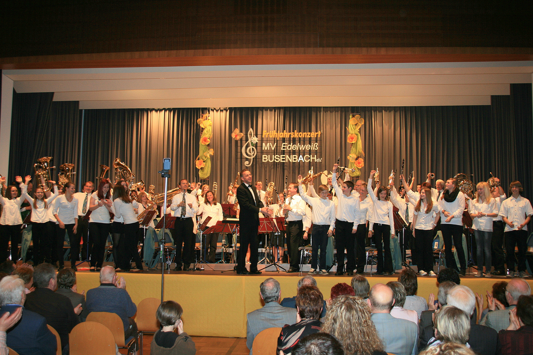 Dem ließ das Große Orchester musikalische Höhepunkte aus dem Film „Rocky III“ folgen. Die jazzige „South Rampard Street Parade“ von Ray Bauduc und Bob Haggart bewegte sich mit den Solisten Rouven Schulze (Schlagzeug), Jasmin Singer (Piccoloflöte), Irina Ochs (Klarinette) und Robert Kowarsch (Trompete) durch die Straßen von New Orleans und zeigte, dass die Busenbacher Musiker und ihr Dirigent Dietmar Schulze sich auch in dieser Musikrichtung zu Hause fühlen. Den offiziellen Programmteil beschloss das Orchester mit einem Medley aus „West Side Story“ von Leonard Bernstein. Dessen wunderschöne Melodien wurden mal gefühlvoll wie „Maria“ interpretiert, aber auch mit dem nötigen Drive wie bei „America“ oder rhythmisch exakt wie bei „Rumble“.