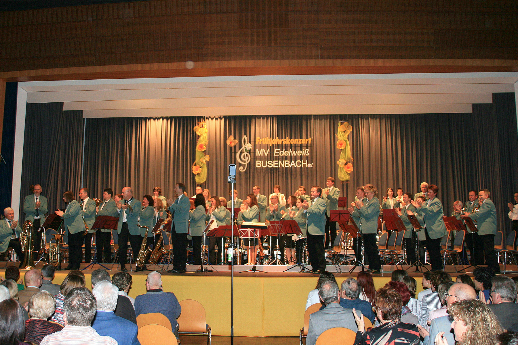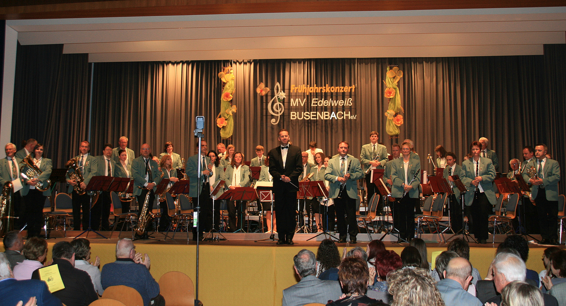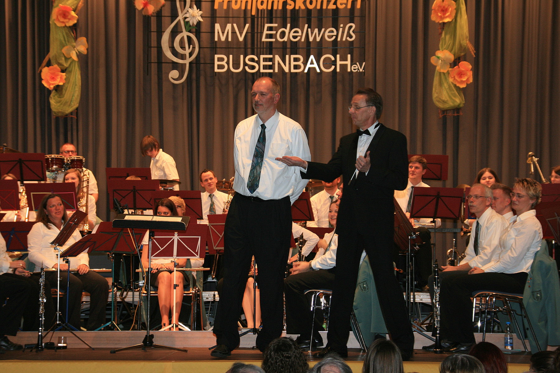Dem ließ das Große Orchester musikalische Höhepunkte aus dem Film „Rocky III“ folgen. Die jazzige „South Rampard Street Parade“ von Ray Bauduc und Bob Haggart bewegte sich mit den Solisten Rouven Schulze (Schlagzeug), Jasmin Singer (Piccoloflöte), Irina Ochs (Klarinette) und Robert Kowarsch (Trompete) durch die Straßen von New Orleans und zeigte, dass die Busenbacher Musiker und ihr Dirigent Dietmar Schulze sich auch in dieser Musikrichtung zu Hause fühlen. Den offiziellen Programmteil beschloss das Orchester mit einem Medley aus „West Side Story“ von Leonard Bernstein. Dessen wunderschöne Melodien wurden mal gefühlvoll wie „Maria“ interpretiert, aber auch mit dem nötigen Drive wie bei „America“ oder rhythmisch exakt wie bei „Rumble“.