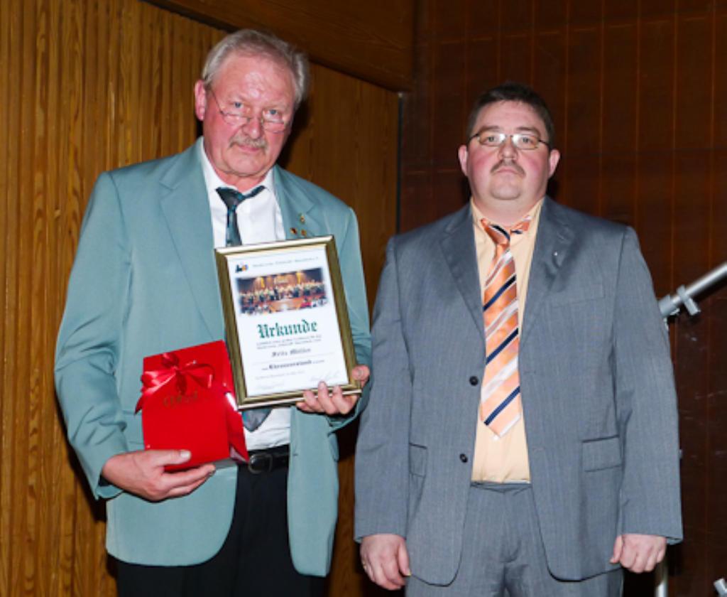 Ehrungen fanden im Rahmen dieses Konzerts beim Musikverein „Edelweiß“ Busenbach statt. Dabei wurde Fritz Müller als erster Vorsitzender offiziell verabschiedet und zum Ehrenvorsitzenden ernannt. Müller, so sein Nachfolger Alexander Huber, sei 1960 in den Busenbacher Musikverein eingetreten und habe Posaune gelernt. 1983 wurde er erstmals in die Verwaltung und 1991 zum ersten Vorsitzenden gewählt. In seine Amtszeit fiel auch der Bau des Proberaums bei der Waldbronner Festhalle.