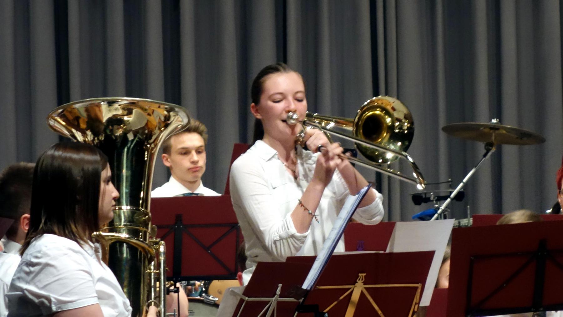 Den musikalischen Reigen eröffnete das Jugendorchester unter der Leitung von Stefan Mussler. Gekonnt präsentierten die Jungmusiker ihr Programm. Mit dem Stück „Fanfare and Triumph“ von James Swearingen, von den Jugendlichen sehr überzeugend gespielt, eröffnete das Orchester den Melodienreigen. Auch der nächste Titel „A Song of Hope“ vom gleichen Komponisten, wurde von den Musikerinnen und Musikern sehr schön und Gefühlvoll interpretiert.