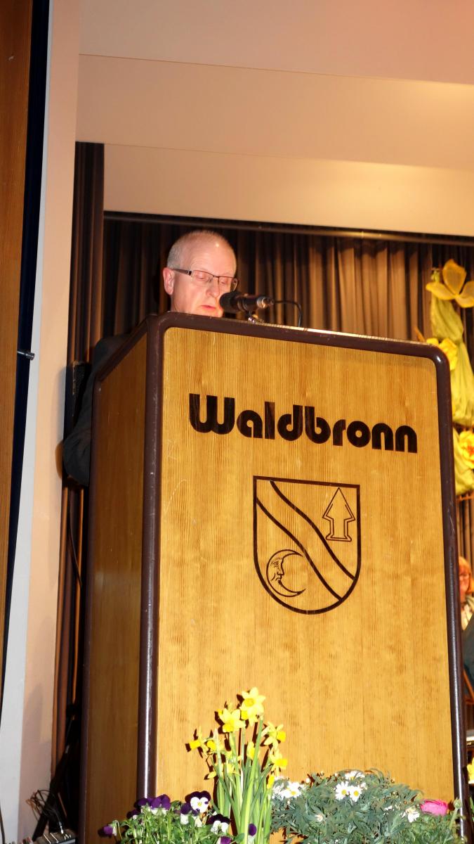 Vorstand Alexander Huber konnte unter den zahlreichen Zuhörern im Kurhaus Waldbronn auch Bürgermeister Franz Masino und Günter Geisert vom Blasmusikbezirk Albtal begrüßen.