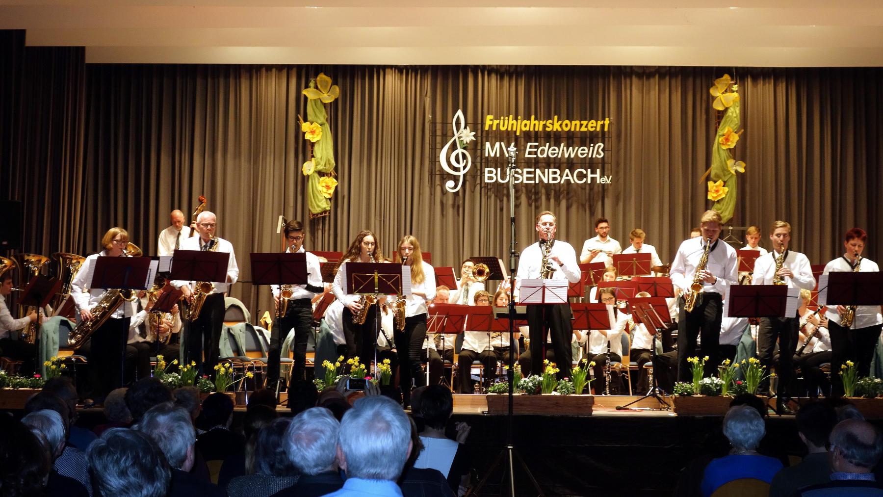 Mit überwiegend moderner Blasmusik begeisterte der Musikverein „Edelweiß“ Busenbach bei seinem gut besuchten Frühjahrskonzert im Kurhaus Waldbronn. Das Große Orchester, verstärkt durch zahlreiche Jungmusiker der vergangenen Jahre, und das neu formierte Jugendorchester standen beide unter der Leitung von Dietmar Schulze.