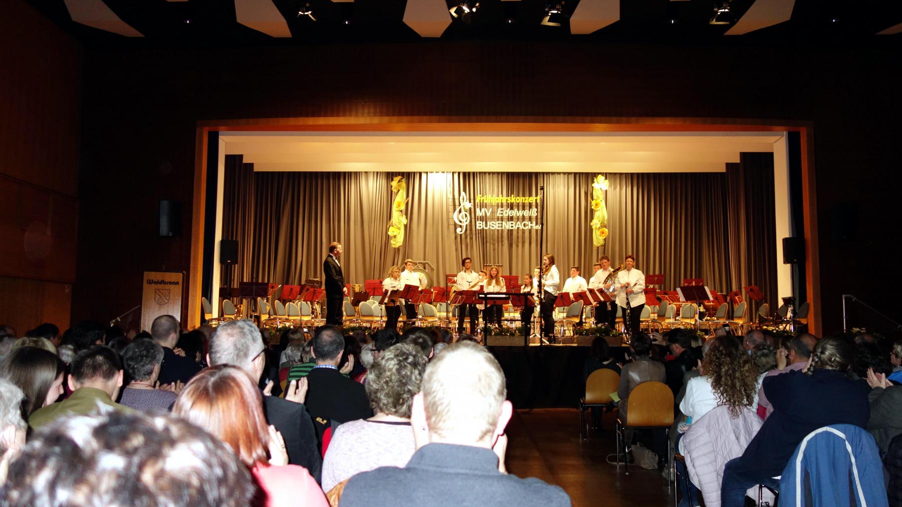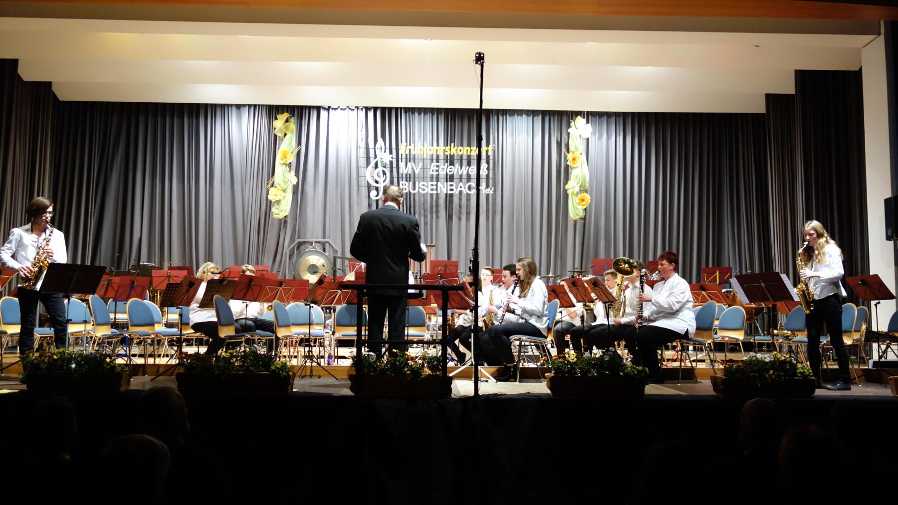 „Wir machen gerne Musik, wir machen für unser Publikum Musik„, damit bedankte sich Dirigent Dietmar Schulze am Ende des Frühjahrskonzerts des Musikvereins „Edelweiß“ Busenbach bei den begeisterten Zuhörern im Waldbronner Kurhaus. Gestaltet wurde der Abend vom Jugendorchester und vom Großen Orchester, beide stehen unter der Leitung von Dietmar Schulze. Durch das Programm führten bei der Jugend Leon von der Forst, beim Großen Orchester Joachim Hirth.