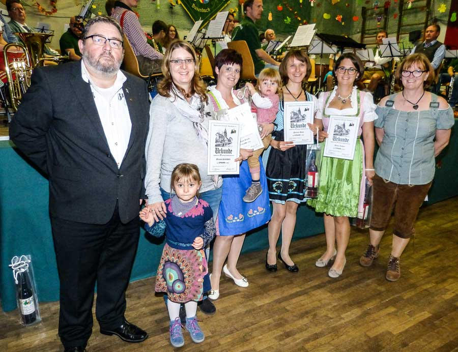Die Ehrungen nahm Vorsitzender Alexander Huber vor.. Die Ehrennadel in Silber für 25-jährige Mitgliedschaft erhielten Beate Anderer, Diana Austen, Stefanie Kreutz, Patricia Mock, Miriam Schächtele, Cornelia Seiberlich, Erich Austen, Werner Becker, Wilhelm Eble, Martin Zaich. Für 50 Jahre Aktivität erhielten die Ehrennadel in Gold Alois Hunzelmann und Harald Reiser. Zu Ehrenmitgliedern nach 50 Jahren fördernder Mitgliedschaft ernannt wurden Ernst Bauer, Wolfgang Bugger und Georg Pitz. Sie erhielten ebenfalls die Ehrennadel in Gold. Besondere Ehrungen erhielten für 60 Jahre Mitgliedschaft Erna Schottmüller, Gustav Lauinger, Rudolf Seebacher. Auf 70 Jahre bringen es Walter Bauer, Heinz Reiser, Ewald Schottmüller, Herbert Schwab, Wolfgang Seiberlich.