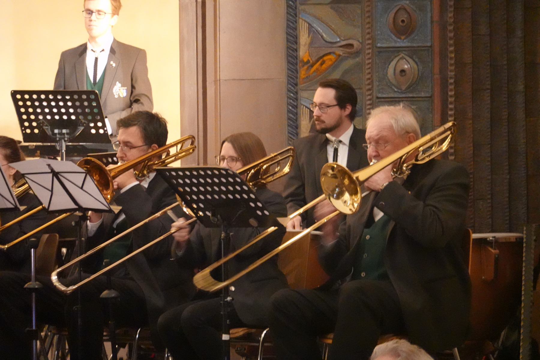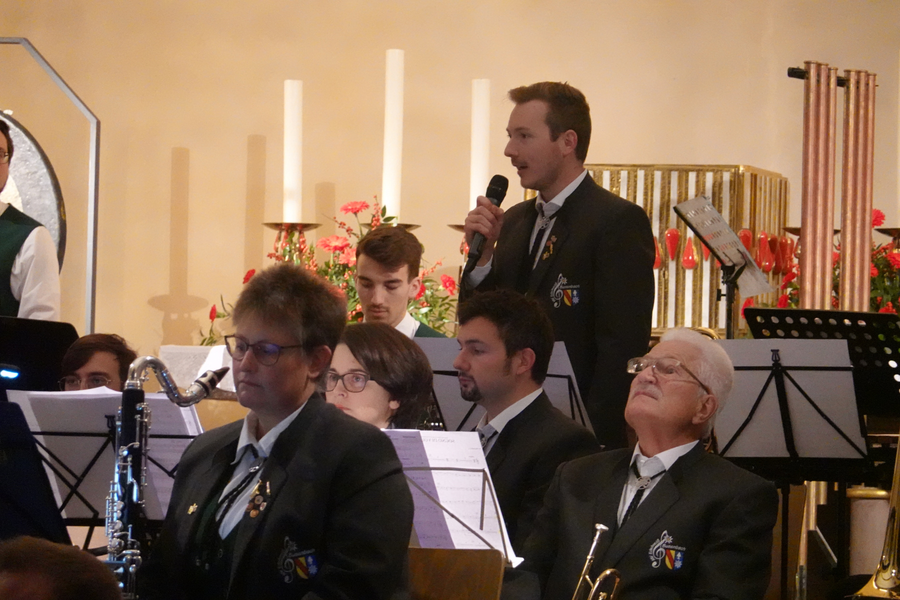 In der prall gefüllten Kirche St. Katharina eröffnete der Musikverein Edelweiß Busenbach sein diesjähriges Kirchenkonzert mit dem „Song of Adoration„, einer von Roland Kernen komponierten Fantasie auf den Klassiker „Lobe den Herrn„. Zunächst ganz leise von ein paar Holzbläsern auf der Empore eingeleitet, stieg das Orchester mit steigender Lautstärke dazu ein und sorgte so für ein perfektes Opening. Der Song „Sogno di Volare“ aus dem Strategie-Computerspiel Civilation VI beruht ursprünglich auf den Schriften des Universalgenies Leonardo da Vinci zum menschlichen Traum vom Fliegen. Der Musikverein brachte dies mit der beschwingten und einprägsamen Melodie dem Publikum nahe. Danach folgte das Kirchenlied „Wo Menschen sich vergessen„, eine Aufforderung zum friedvollen Leben miteinander. Anschließend trug das Blechbläsersextett begleitet vom Schlagzeug die 80er-Ballade „The Power of Love“ von Jennifer Rush vor. Es folgte ein weiteres Highlight des Abends. „Der Magnetberg“ von Mario Bürki erzählt eine Geschichte aus dem weltbekannten orientalischen Märchenbuch 1001 Nacht. Hierbei wechselten sich mit Meeresrauschen unterlegte wunderschön getragene Melodien mit wuchtig kraftvollen Passagen ab. Nachdem bereits die Blechbläser eine Ensemblenummer dargeboten hatten, waren nun die Holzbläser an der Reihe. „Perfect“ von Ed Sheeran wurde von Kathlyn Volk am Saxophon solistisch eingeleitet und von Johanna Schulze gefühlvoll gesungen. Mit der Ouverture zur komischen Oper „Der Kalif von Bagdad“ beendete der Musikverein sein offizielles Programm. Natürlich verlangte das Publikum mit langem Applaus und Standing Ovations nach Zugaben und bekam den Robbie Williams-Hit „Angels„, gesungen von Sarah Kirchhoffer und „Redemption“ von Rossano Galante präsentiert. Ganz zum Abschluss wurde wie zu Beginn noch einmal „Lobe den Herrn“ gespielt, diesmal allerdings das Original. So ging ein sehr schöner Konzertabend zu Ende.