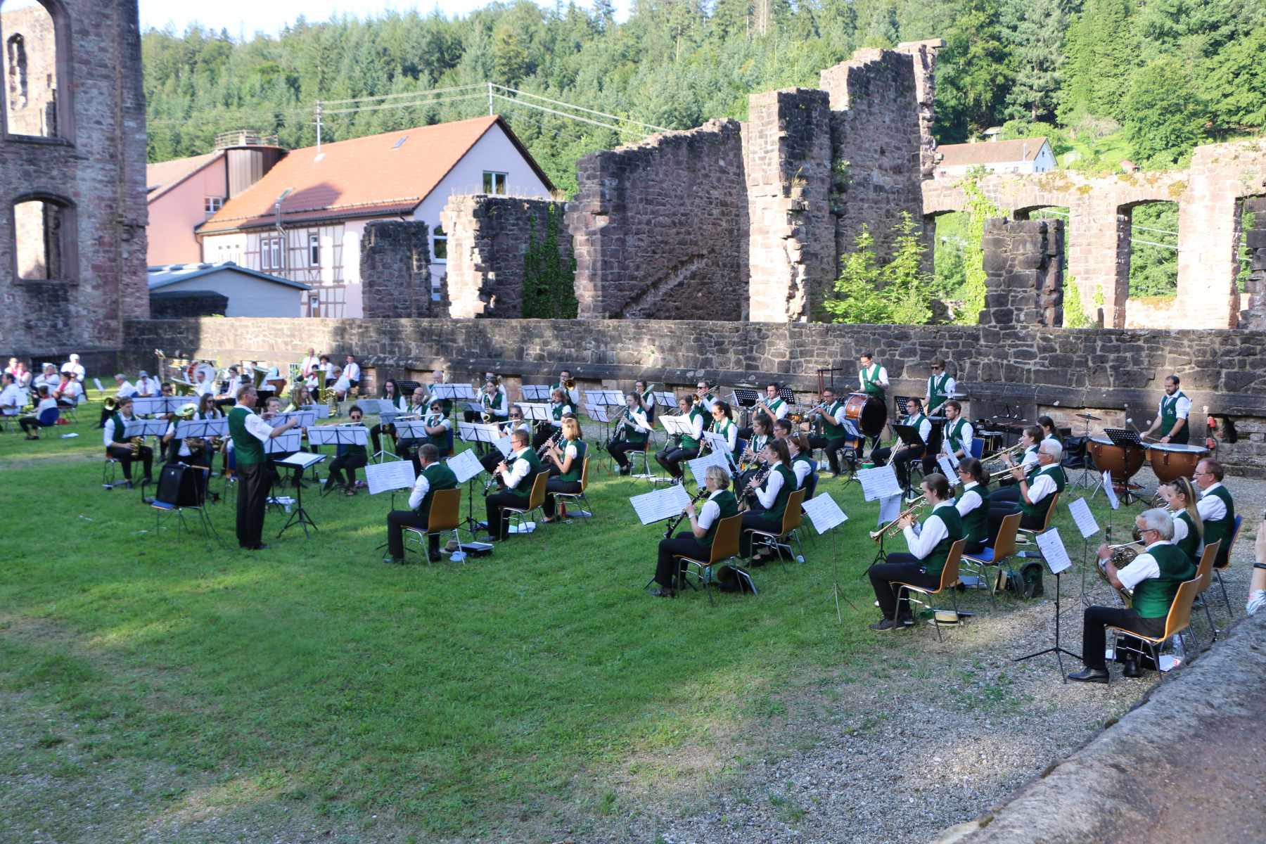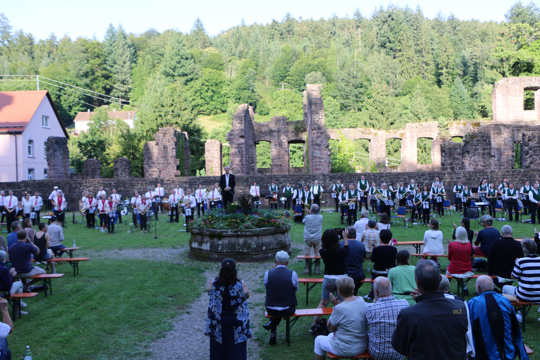 Vor traumhafter Kulisse und bei wunderbarem Wetter konnte der Musikverein Edelweiß Busenbach am Sonntag, den 18.Juli, in der Klosterruine in Frauenalb gemeinsam mit der Spielgemeinschaft der Musikvereine Ettlingen/Rüppurr die Konzertsaison beim Gemeinschaftskonzert „Musik vereint“ eröffnen. Die Vereine hatten sich im Klostergarten platziert, während die Zuhörer auf den verteilt aufgestellten Bänken im gesamten Klosterareal Platz nehmen konnten.