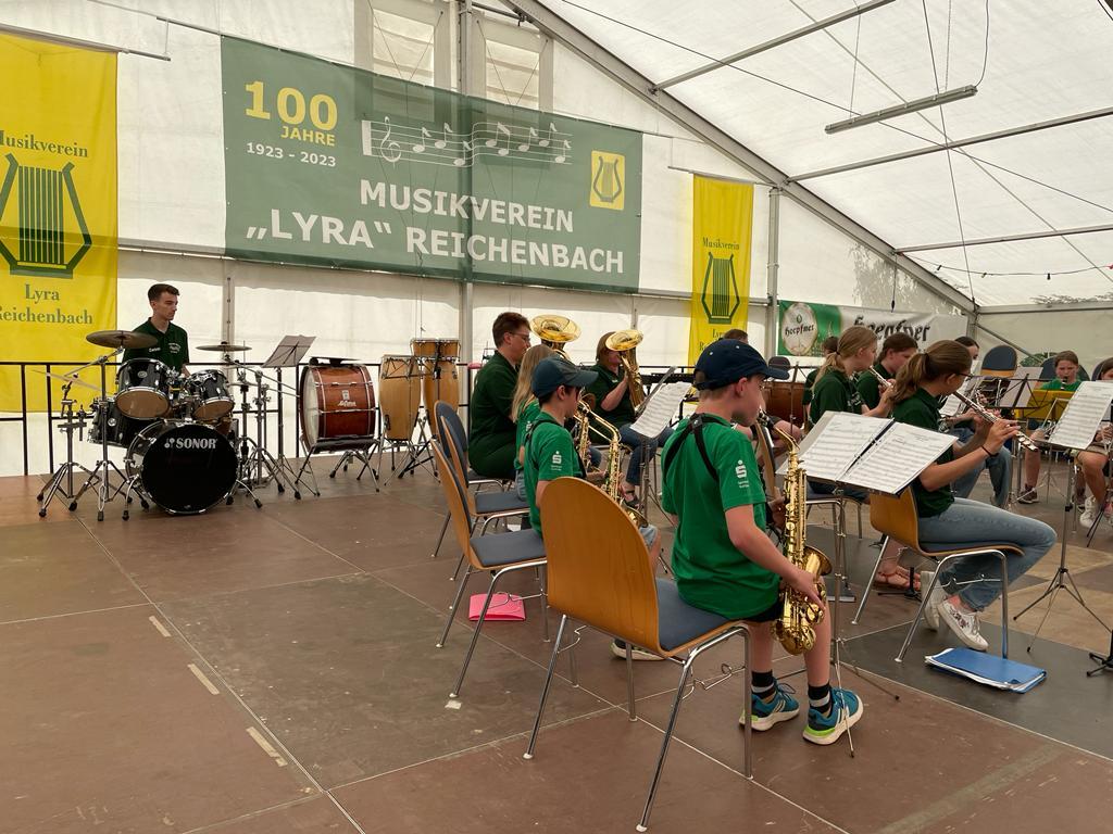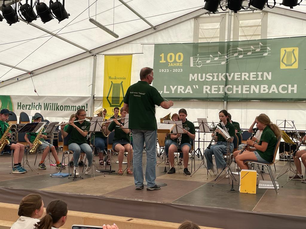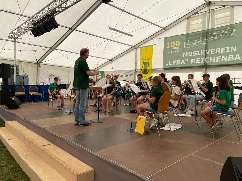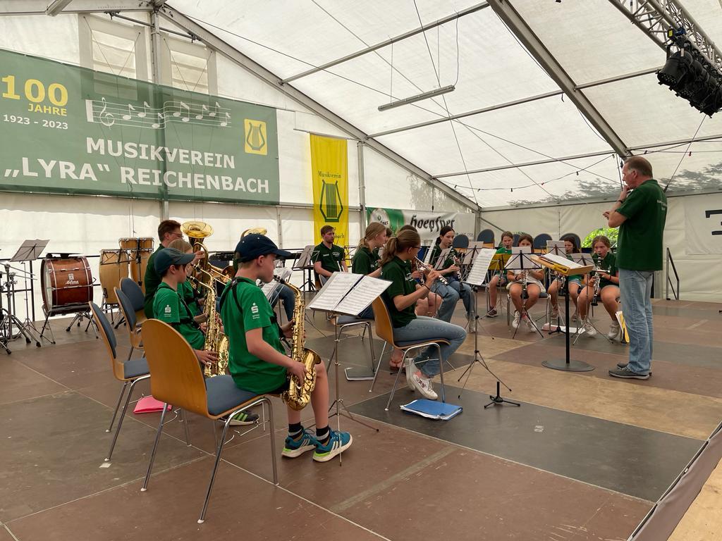 Die Jugendkapelle machte den Auftakt zum Wochenende, in dem man beim Jugendnachmittag des MV „Lyra“ Reichenbach zu Gast war. Trotz Schwimmbad-Wetter präsentierte sich unsere Jugend mit stimmungsvollen Lieder im Kurpark super.