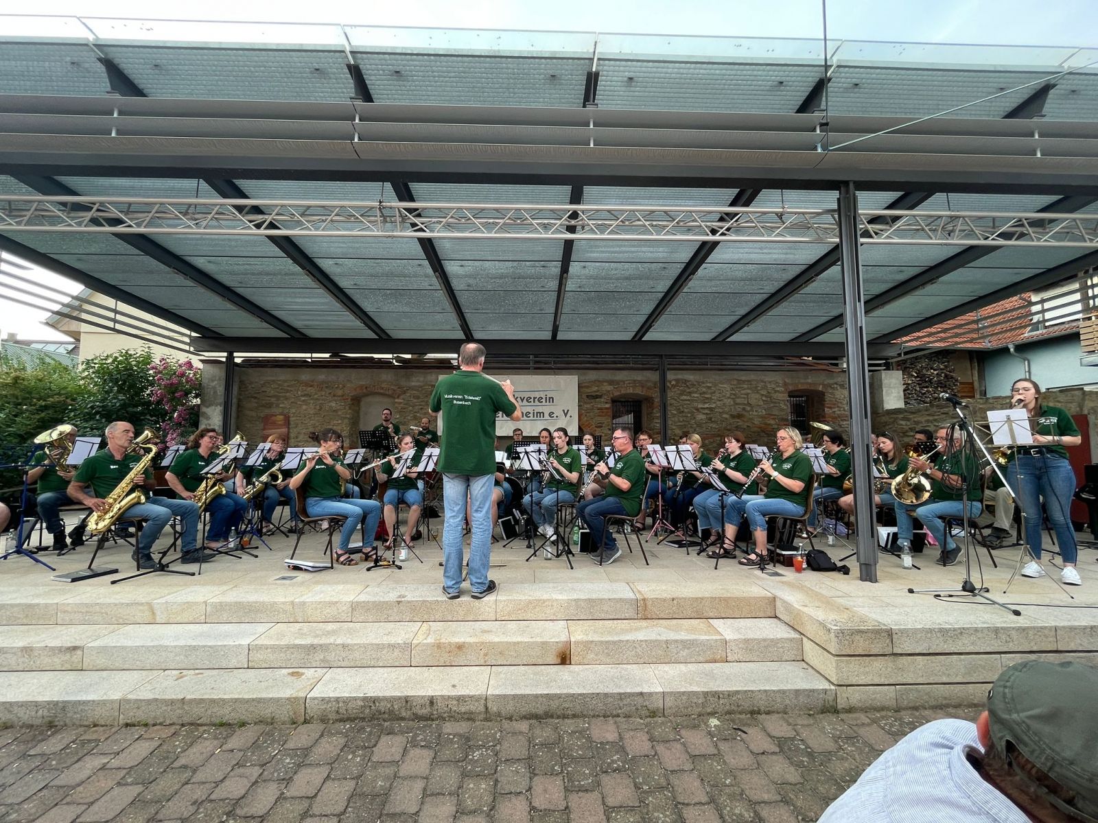 Am Abend war das große Blasorchester erstmalig beim Sommerfest des Musikverein Neibsheim zu Gast, wo man von 18 – 20 Uhr für musikalische Unterhaltung sorgte. Die Stimmung in Neibsheim war super und so ließen auch einige MVEler den Abend noch in Neibsheim bei Burgern, Getränken und guter Musik ausklingen.