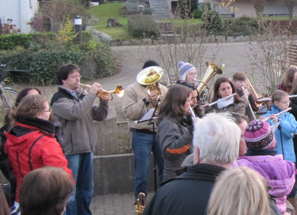 Auf dem Friedhof in Busenbach spielte die Kapelle auch 2011 traditionell Weihnachtlieder vor einer stimmungsvollen Kulisse