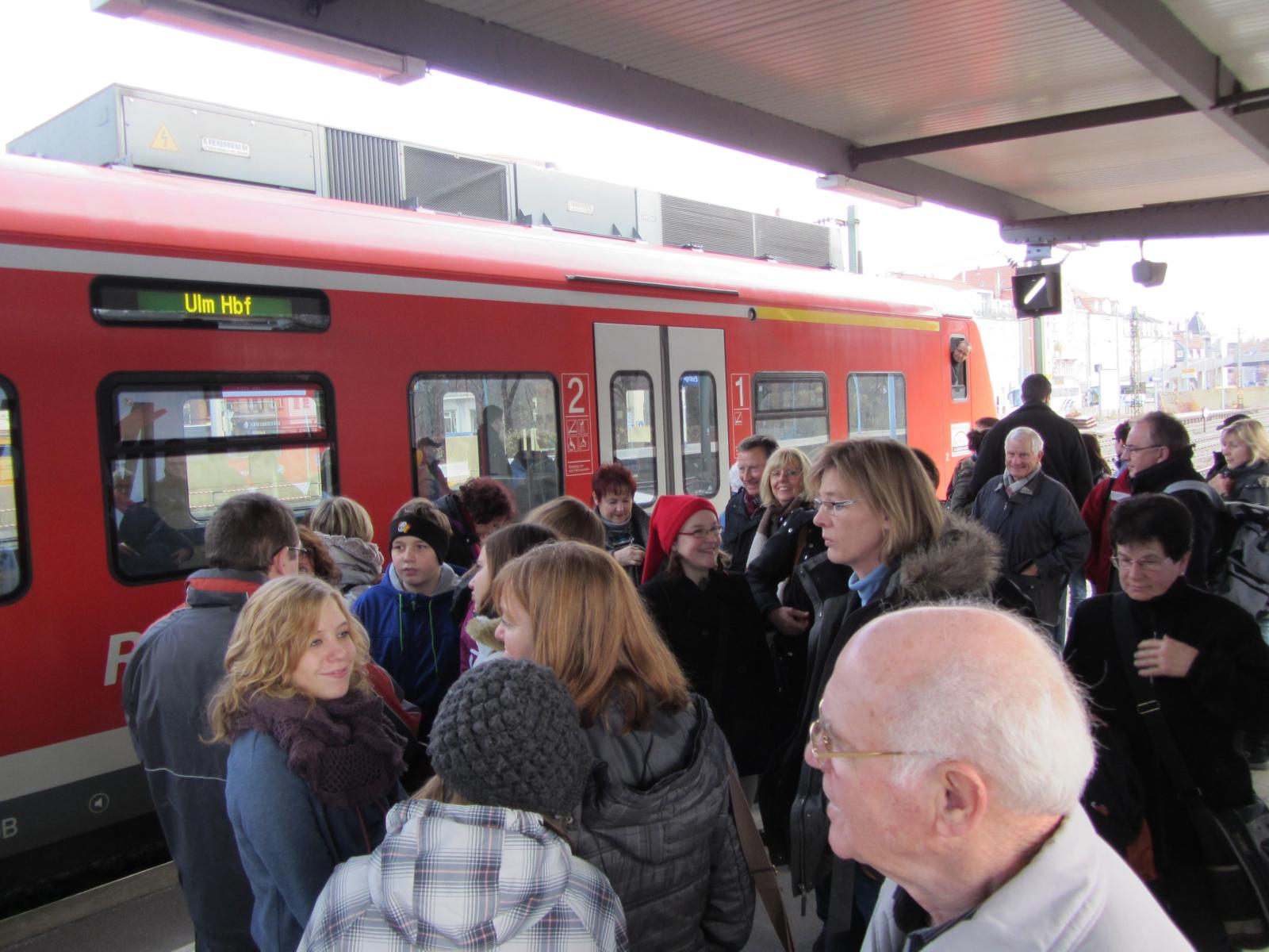 Eine stattliche Anzahl Unerschrockener standen am 10.12.2011 früh morgens am Bahnhof Busenbach trotz AVG Streik nach Karlsruhe zu kommen. Und siehe da, es klappte. Pünktlich um 9.22 Uhr kam ein Ersatzbus um uns an den Hauptbahnhof nach Karlsruhe zu fahren. Doch damit nicht genug, im Karlsruher Hauptbahnhof war die Hölle los. Es schien so, als wollten alle zum gleichen Ziel nach Esslingen. Aber auch diese Hürde wurde genommen. Glücklich kamen wir im überfüllten Regionalexpress nach Stuttgart und von dort dann nach Esslingen.