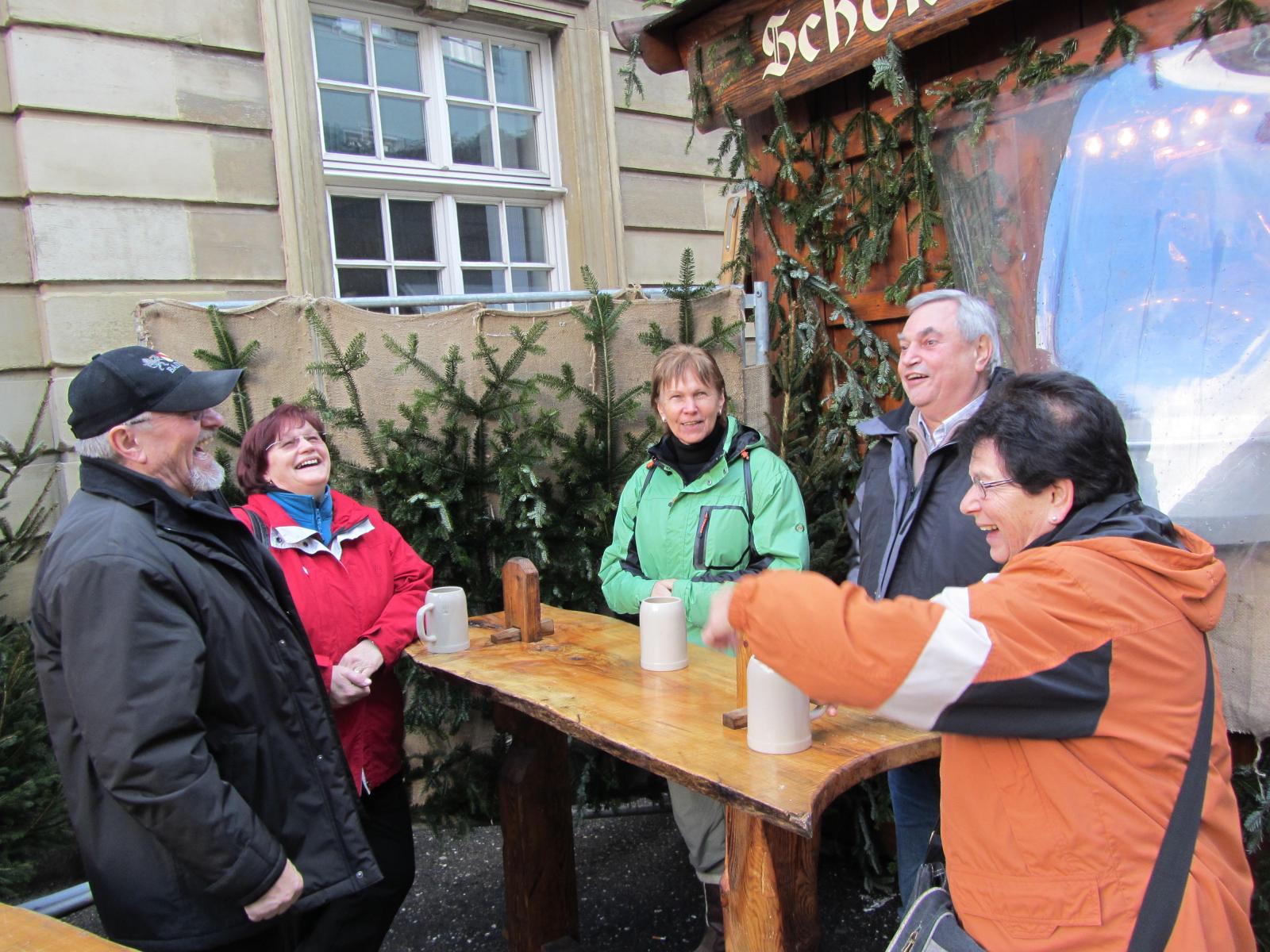 Ein kurzer Fußmarsch brachte und dann zum Weihnachtmarkt. Nun hatten wir Zeit die vielen Angebote zu genießen und die schönen Hütten zu bewundern. Es war ein tolle Atmosphäre und so war es nicht verwunderlich, dass die Zeit wie im Fluge verging.
