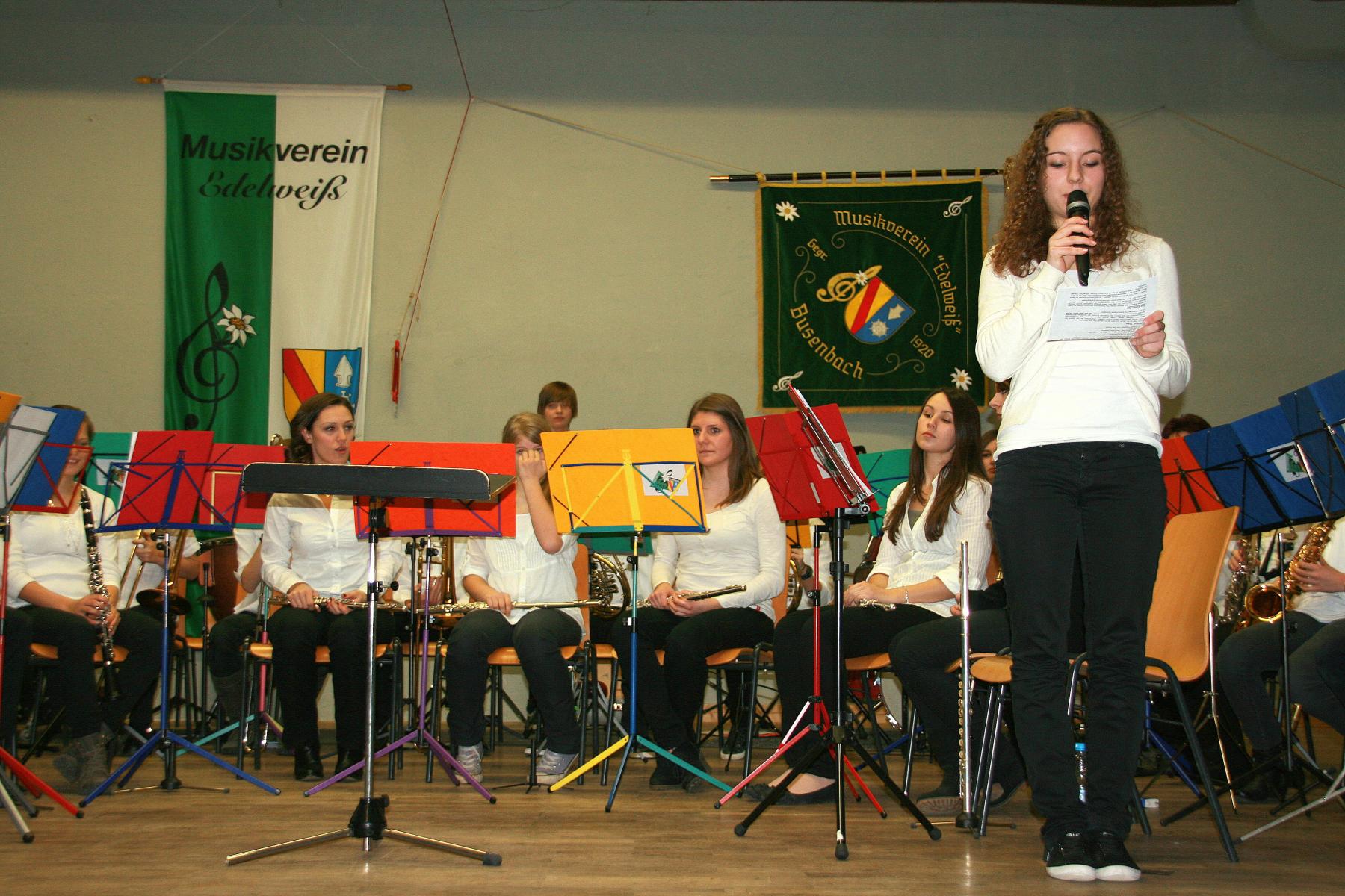 Hervorragende Blasmusik bot dann die Bläserjugend. Auch sie stand unter der bewährten Leitung von Stefan Mußler. Alisa Jäger führte charmant durchs Programm das mit Musikstücken wie „Eventide Fall„, „Flowerpower„, „Lemontree“ und „Oye Coma va“ anspruchsvolles Niveau hatte.