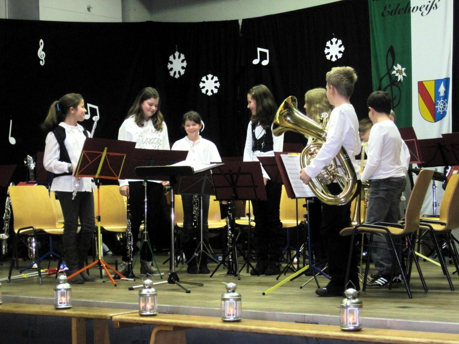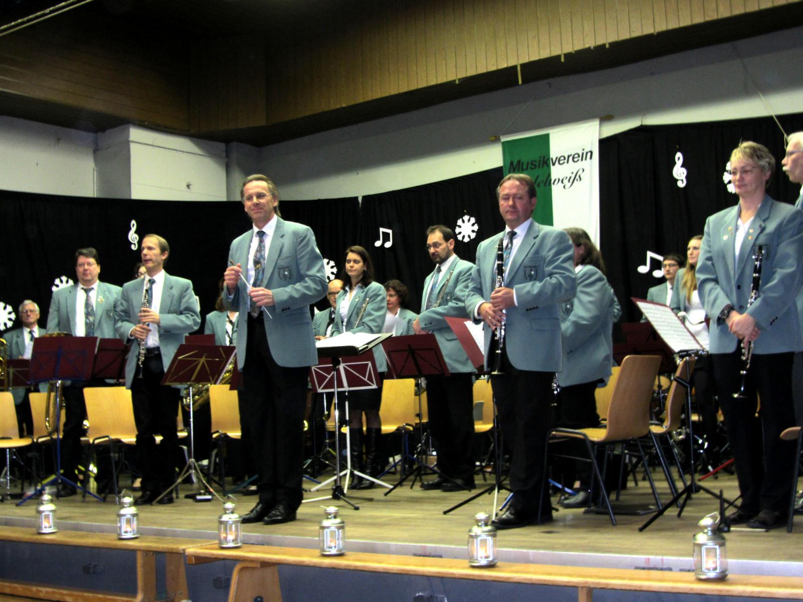 Umrahmt wurde die Winterfeier durch das Vorstufen- und das Jugendorchester unter der Leitung von Stefan Mussler, die für ihre gelungenen Darbietungen lebhaften Applaus der Zuhörer erhielten und entsprechend um eine Zugabe nicht herumkamen. Das musikalische Programm des Abends rundete das erste Orchester unter der Leitung von Dietmar Schulze ab.