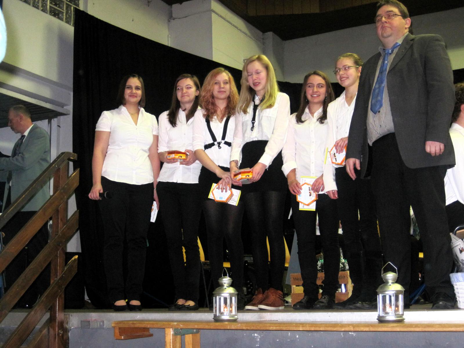 Geehrt wurden außerdem 6 Mädels unseres Jugendorchesters, die über die Weihnachtsferien das bronzene bzw. silberne Leistungsabzeichen in der Bundesmusikschule Kürnbach geleistet haben.